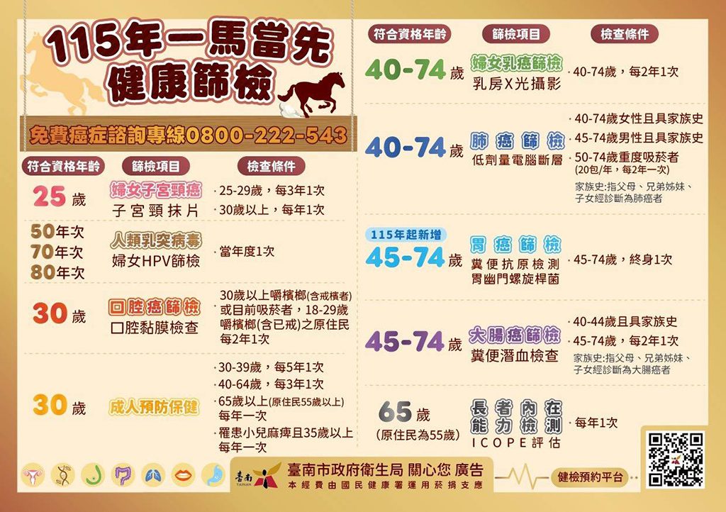 115年起南市 37 區衛生所及多家合約醫療院所提供公費胃癌篩檢服務