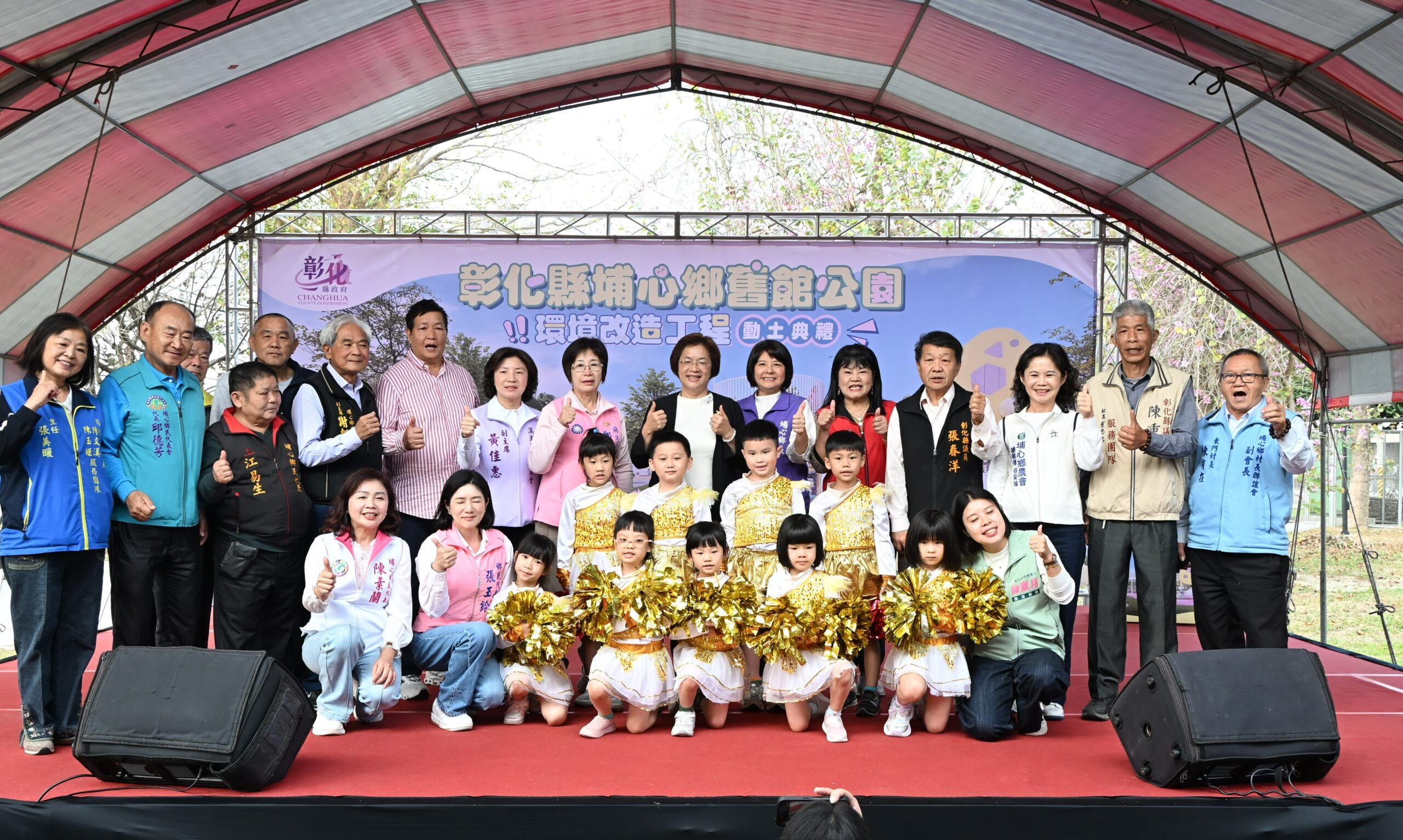 彰化縣政府持續推動各鄉鎮共融休憩場域之建置計畫,縣長王惠美24日前往埔心鄉主持「埔心鄉舊館公園環境改造工程」開工動土典禮。王縣長表示,本工程在議長謝典霖及議員們對預算的支持下,自籌2,447萬元,加上增設親子與無障礙廁所等設施加碼600萬元,總計3,047萬元。另以埔心知名的「三蜜」產業為設計主軸,預計將為縣內增添親子休憩新亮點。