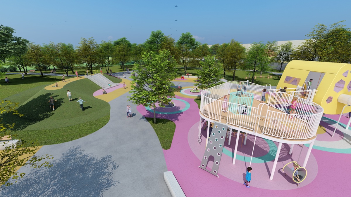 王惠美指出,同時為長輩規劃 450 公尺環場步道與體健設施,讓不同年齡層都能在此找到適合的活動空間。希望大朋友帶著小朋友,走出戶外享受和煦的陽光,增進親子關係。環場步道銜接既有交通公園與停車場,串聯完成後將成為埔心地區重要的親子活動空間,不僅是遊憩場所,也將兼具教育功能與自然體驗。