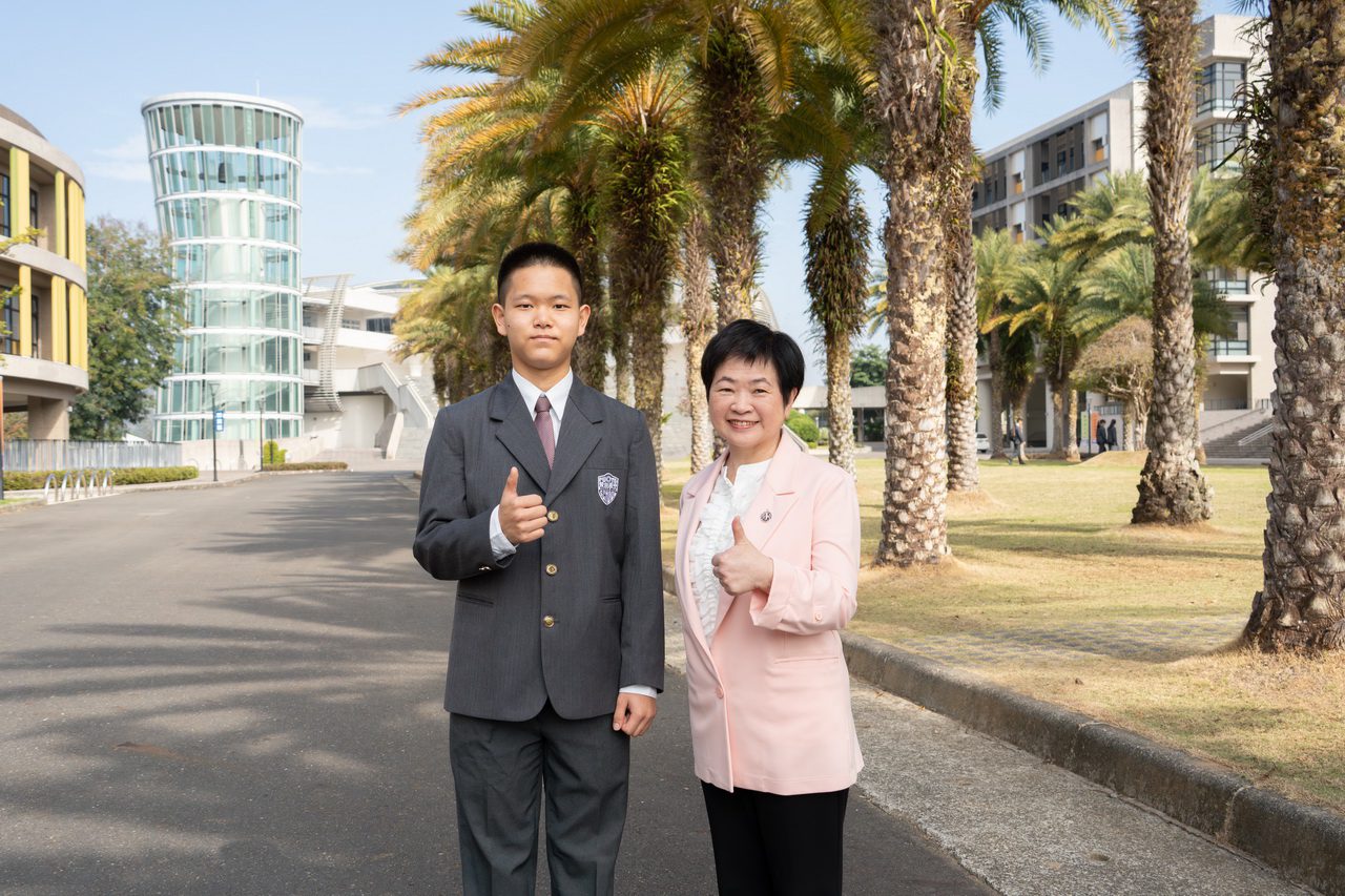 數B、自然雙科滿級分的慈緣,和俊希是從小學一路到高中的讀書戰友,互相討論、彼此督促,這次並列54級分。慈緣積極投入自然研究社、數學研究社及書法社,並在南投縣音樂比賽榮獲琵琶、中阮優等第一名,日語檢定已達N2,今年挑戰N1;俊希則透過學校系統化整理的考古題與師長引導,加上穩定作息與踏實複習,穩健發揮學習成效。
