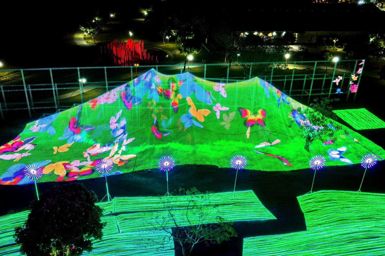 特別是縣民公園的巨型主燈「山之光」,高12公尺、寬達60公尺的實景地景裝置,並非單純的布幕投影,而是透過精準的聲光設計,呈現大武山的季節更迭及立體層次感,搭配交響樂,視覺聽覺雙重震撼,網友直讚太棒了,喜歡登山的人很有感,還有人說屏東燈節當teamlab來辦,認為可以得獎了。