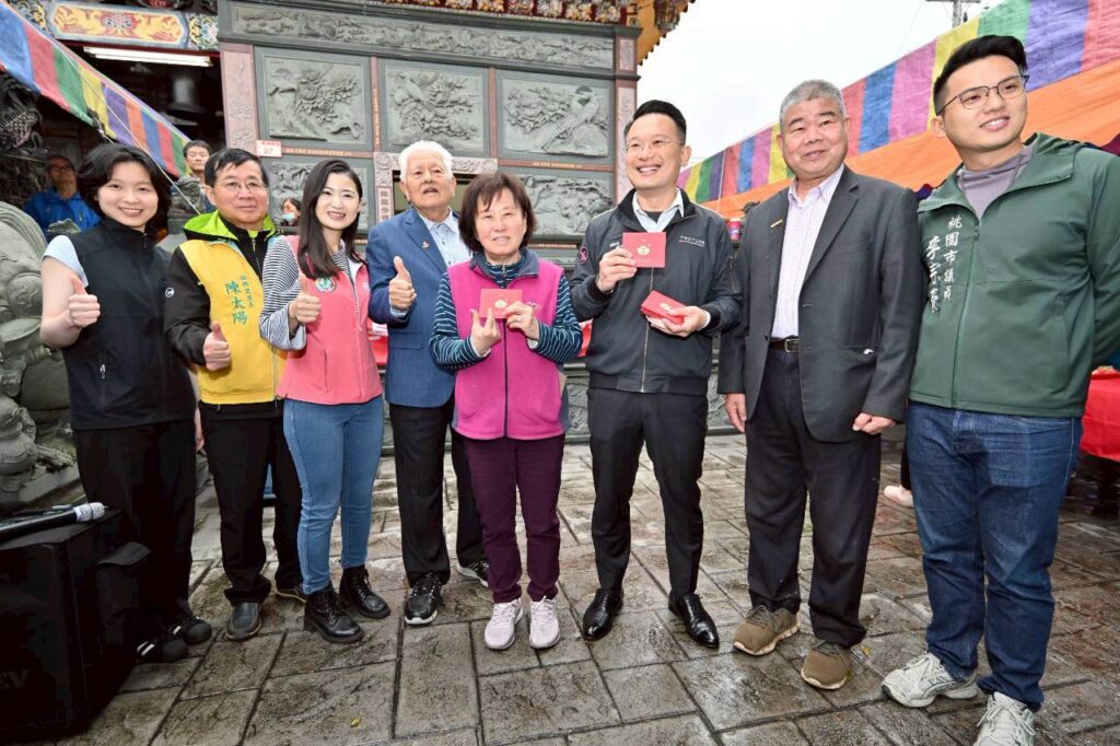 蘇俊賓提及,農曆正月十五前都算過年,他也代表張善政市長發放福袋,希望在正月初九這個好日子,讓大家回去馬上有錢、馬上發財、馬上有好運,他也加碼送出自己手繪的福袋,民眾爭相索取。慈惠堂今日也由賴森源主任委員發放母娘平安錢母,供信眾回去保平安。