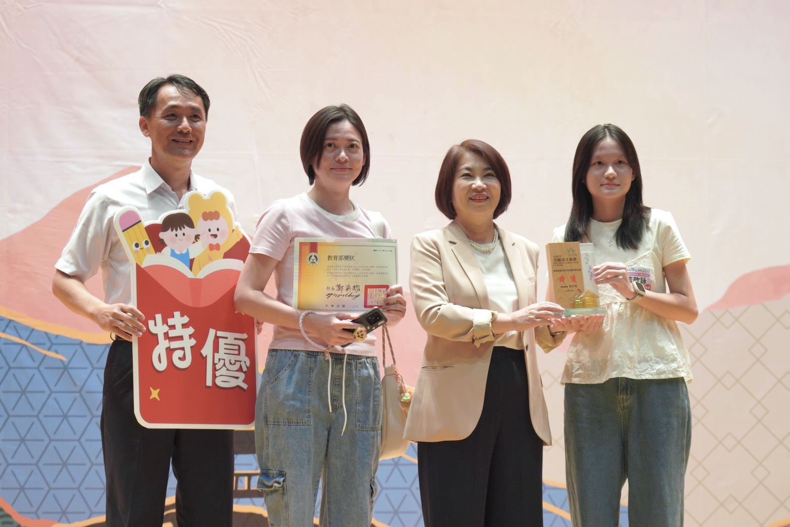 榮獲客語朗讀高中組特優的蘇子茜同學分享,自己爸爸是閩南人、媽媽是客家人,從小開始學習客語,平時在家也會與媽媽以客語交談。她表示,正式朗讀與日常對話不同,在轉音與語調上需更加精準,目前已取得客語中級認證,未來也將持續精進語言能力。