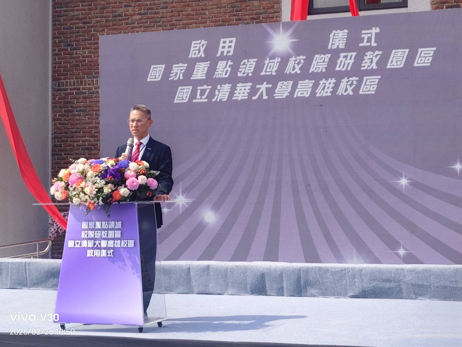 配合國家南部產業發展與科技布局政策,國立清華大學應高雄市政府邀請設立高雄校區,26日舉行「國家重點領域校際研教園區 清華大學高雄校區啟用典禮」。在教育部核准與中央、地方攜手推動下,高雄校區正式揭牌啟用,象徵南台灣邁向高階人才培育與科技創新的新里程碑,也為產學共創、區域轉型注入源源不絕的新動能。