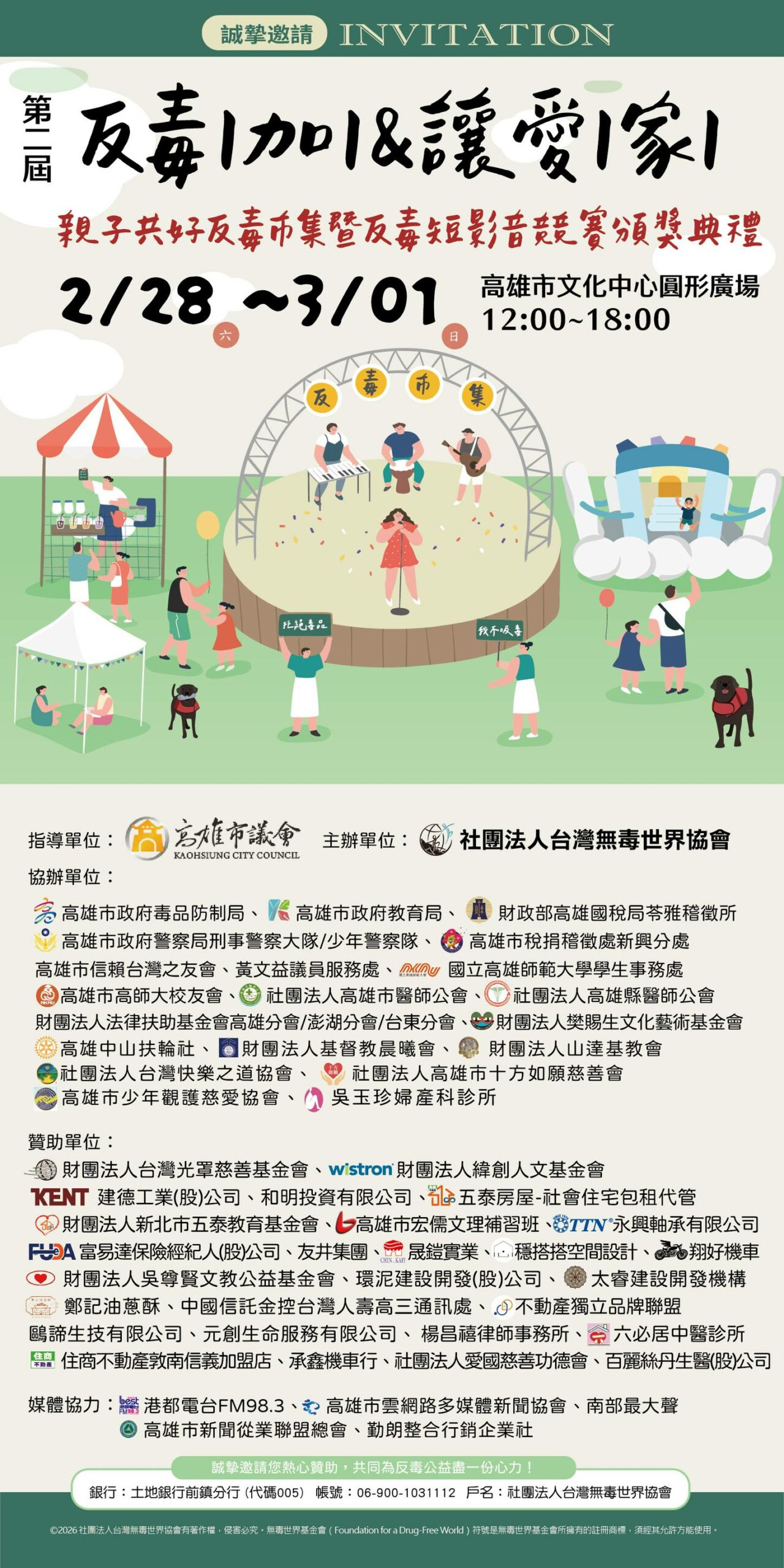 活動由 高雄市議會指導,結合多個公部門、醫療、教育與公益團體共同參與,展現城市攜手反毒的行動力,具高度公共議題與新聞價值,誠摯邀請貴單位蒞臨採訪報導。