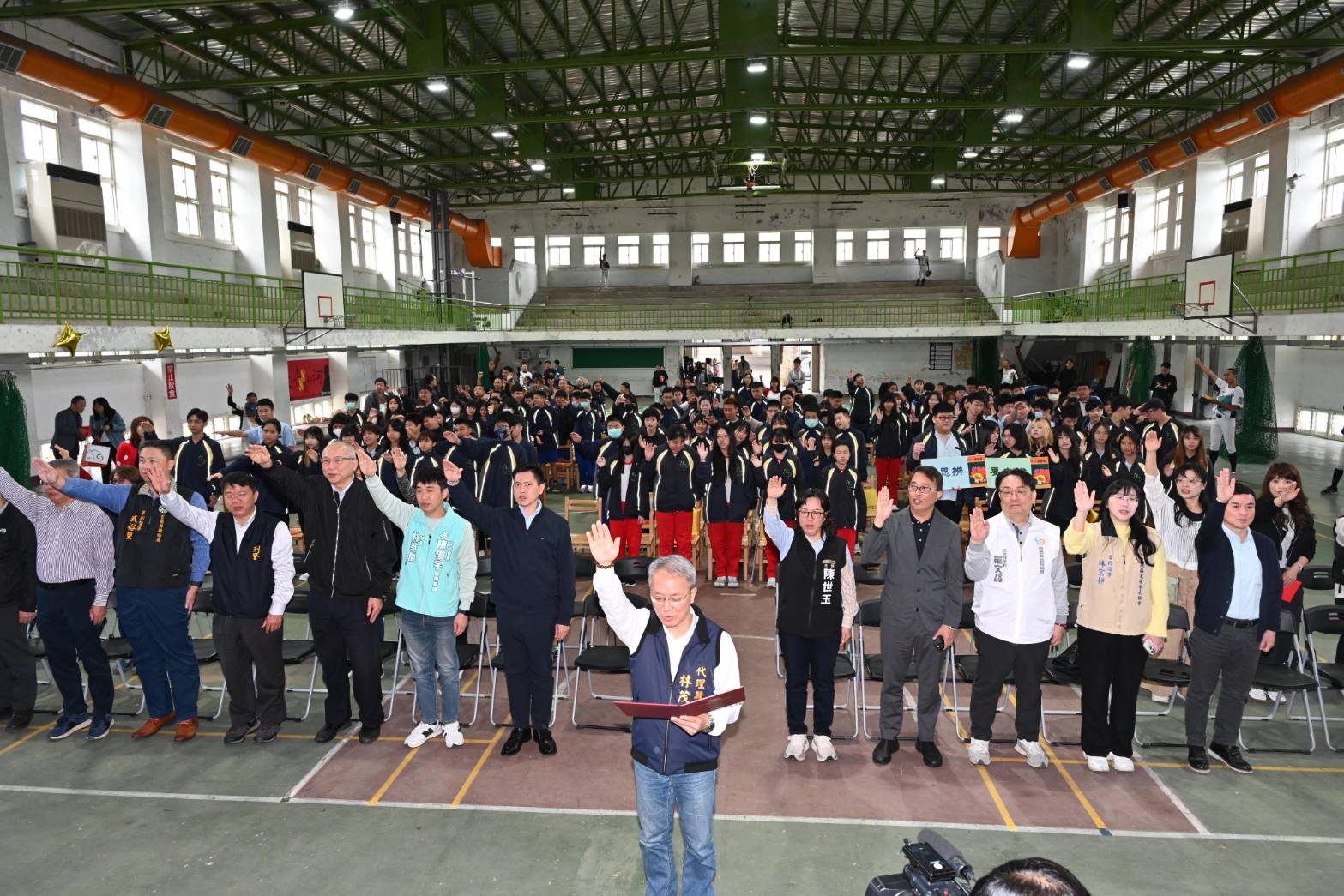宜蘭縣政府114學年度第2學期友善校園週「拒絕短影音風險:別被演算法牽著走,思辨、查證、要求助」宣導活動,26日在三星國中體育館舉行,由代理縣長林茂盛與三星國中師生一起宣誓。
