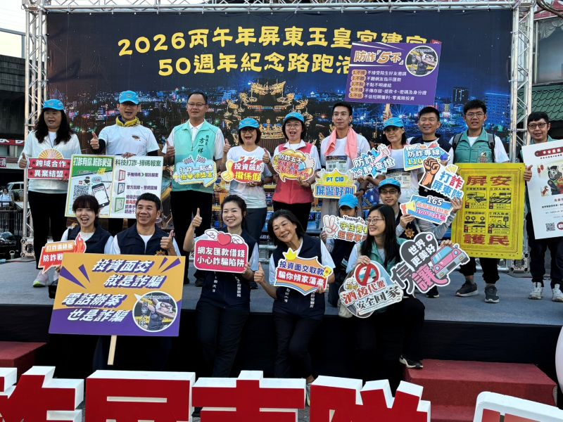 屏東縣政府警察局因應千變萬化的詐騙招數,為守護鄉親的財產安全,展現「打詐超前部署」的決心,於2月27日結合屏東市玉皇宮舉辦「建宮50週年紀念路跑活動」場合,與民政處、屏東市公所等公私力單位用行動將反詐意識化為奔跑的力量,讓識詐警覺搶在騙局得逞前,宣示打詐的路上,警方絕不退讓!