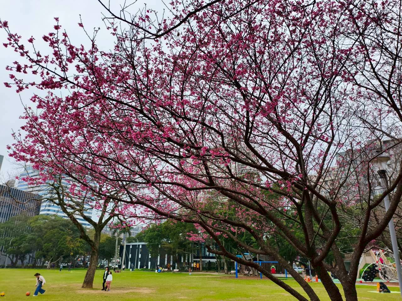 ▲林口區除了竹林山寺,也推薦賞櫻、野餐與遊憩的好去處-林口社區運動公園。(圖/新北市景觀處 提供)