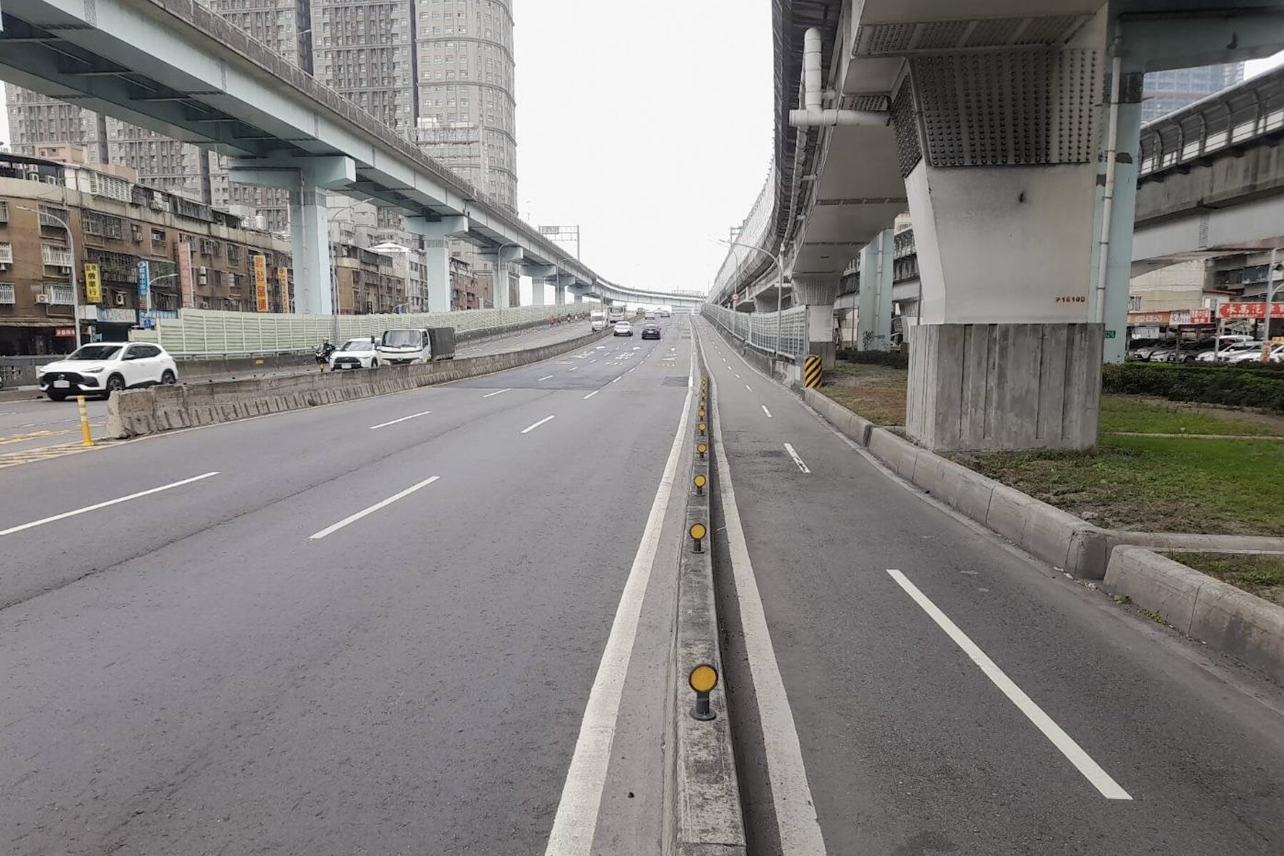 ▲大漢橋機慢車專用道實體分隔島拆除工程分成2階段進行,白天未施工時,機車道將恢復正常通行。(圖/新北市工務局 提供)