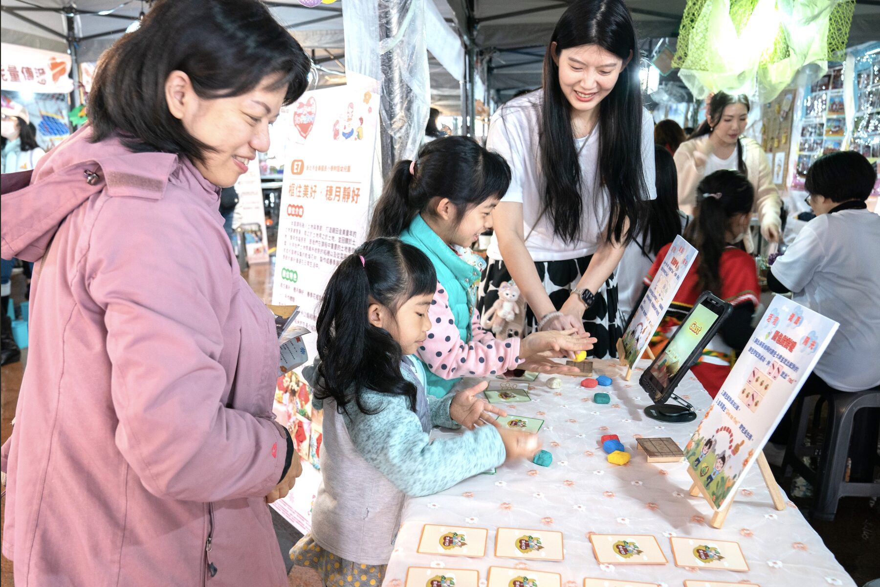 其中「AI互動體驗區」,透過趣味科技互動引導幼兒認識未來學習;「永續環境小達人」以遊戲帶孩子認識環保與愛地球;「創意手作坊」鼓勵動手做、激發想像力;「感統遊戲區」結合專業設計體驗,支持幼兒身心發展與探索能力,讓不同年齡層的孩子都能找到適合自己的學習節奏。
