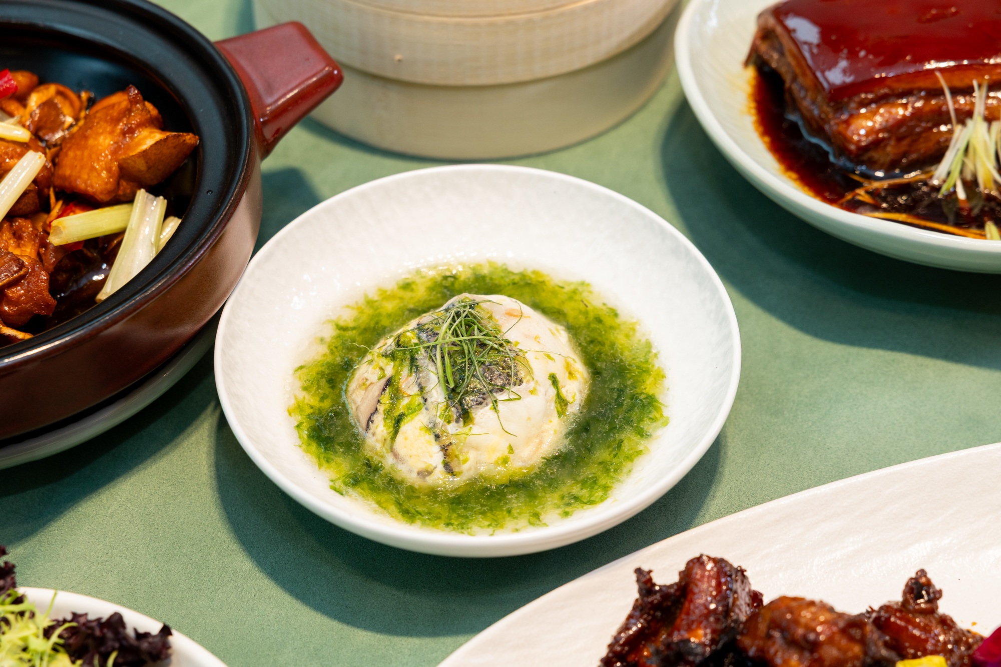 除了新菜設計,餐廳亦保留多道品牌經典料理。其中以12小時慢火燉煮的「烤方」,展現濃油赤醬的江浙風味;而「蟹黃豆腐」則是許多老饕心中的招牌菜色,嚴選新鮮蟹肉與蟹黃手工拆取熬製成濃郁蟹黃醬,再與外酥內嫩的芙蓉蛋豆腐結合,層層堆疊出鮮香濃郁的海味風格,展現上海料理對火候與食材細節的講究。