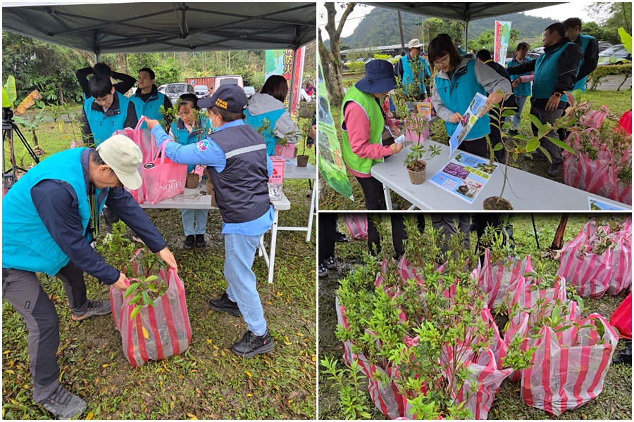 現場並提供苗木,由民眾以3張發票兌換1株苗木,贈送桃金孃、烏來杜鵑、山黃梔等共250株,募集的發票全數捐給宜蘭縣社會福利聯合勸募基金會。