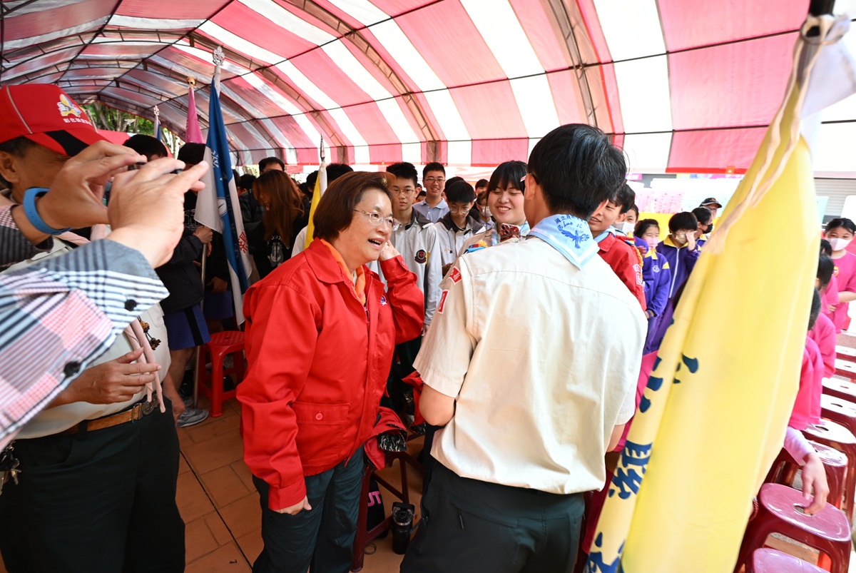 縣長王惠美表示,希望同學不要只在書本學習知識,也要透過親身實踐。隨著氣候變遷與地緣政治影響,如何在不同環境裡具備求生技能,已成為我們必須重視的課題。縣府去(114)年投入超過370萬元推動童軍教育,辦理童軍節慶祝活動、童軍思源日暨木章持有人年會、工程架設實作競賽、親子體驗營、木章訓練營、聯合大露營等活動,期盼讓學生親近童軍精神與實際體驗,將所學融入生活。