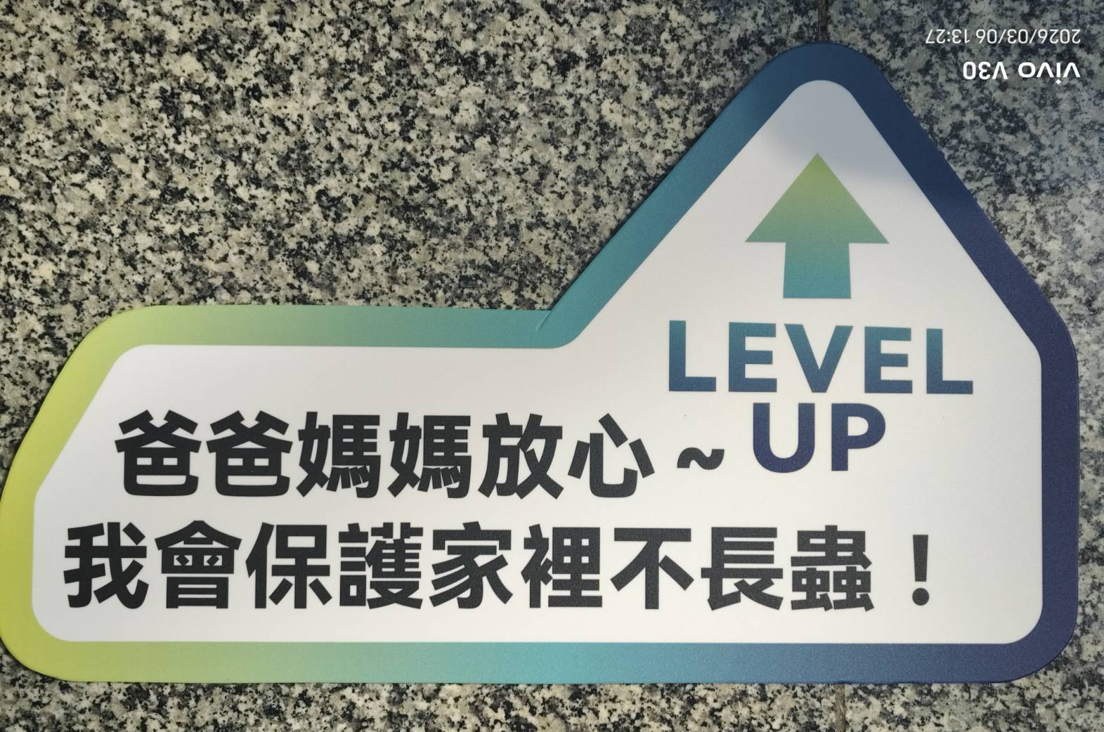 活動內容包括害蟲知識挑戰賽、有獎問答及親子闖關遊戲,讓大小朋友在輕鬆氛圍中了解害蟲生態與防治方法。其中由科工館設計的「滅飛特攻隊」教具,透過模擬遊戲介紹登革熱病媒蚊的生活史與繁殖環境。孩子們在遊戲中學習到,積水容器如花盆底盤、廢棄輪胎或水桶,都可能成為蚊子的繁殖場所,只要清除積水、保持環境整潔,就能有效減少蚊蟲孳生。