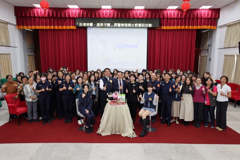 為迎接三八國際婦女節的到來,屏東縣政府警察局於今日舉辦了一場別開生面的慶祝活動。有感於女性同仁在國境之南不畏烈日、辛勞執勤,今年特別結合熱心企業的溫暖贊助,由甘炎民局長代表致贈每位女性同仁「專業眼影彩妝禮盒」,現場更精心安排專業彩妝師進行示範教學,讓平時嚴肅的警局頓時洋溢著溫馨與知性的氣息。