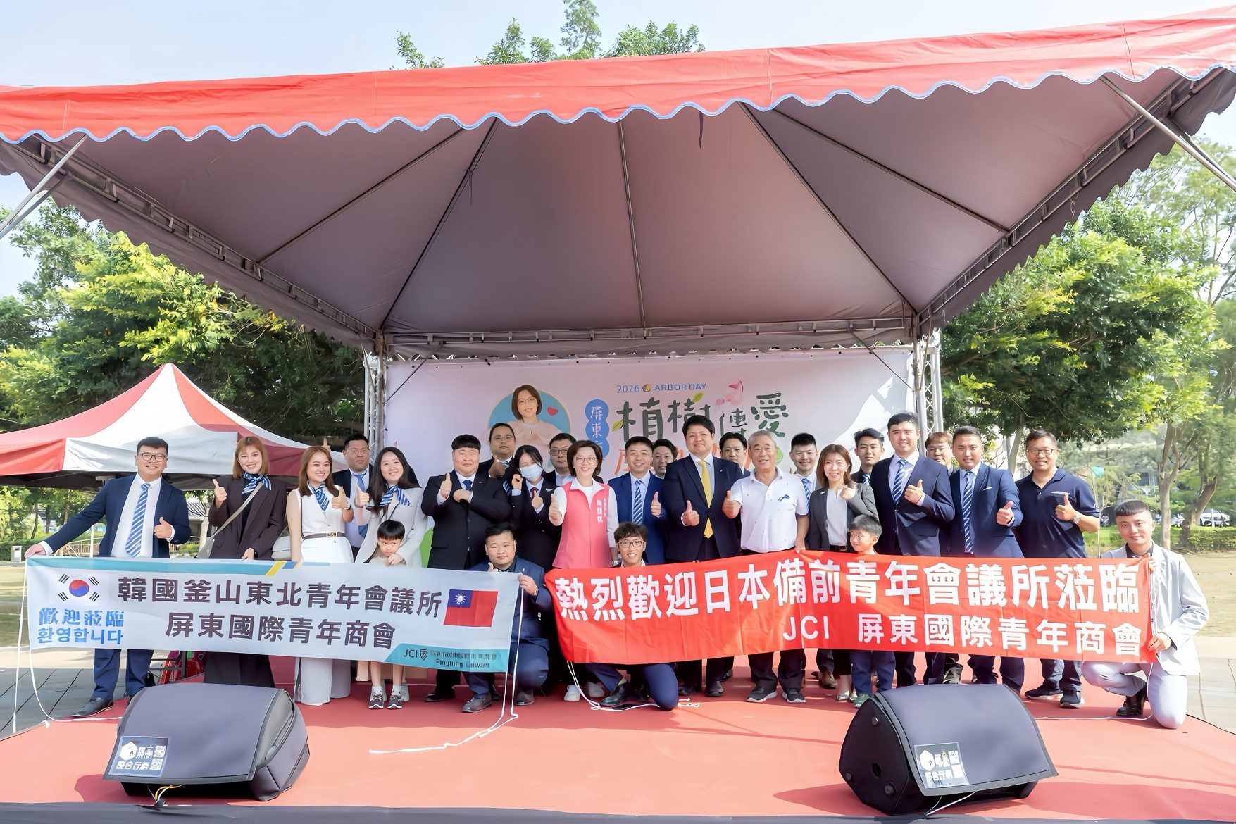 活動現場嘉賓雲集,包括日本備前青年會議所理事長松本宏行、韓國釜山東北青年會議所會長金瑟祺、林業及自然保育署屏東分署副署長朱木生、屏東縣後備指揮部指揮官李中文上校、屏東國際青年商會會長蕭少廣及會友團,以及欣屏天然氣公司董事顏福佑等人,一同種下象徵希望的樹苗,展現環境永續與國際友好合作的理念。