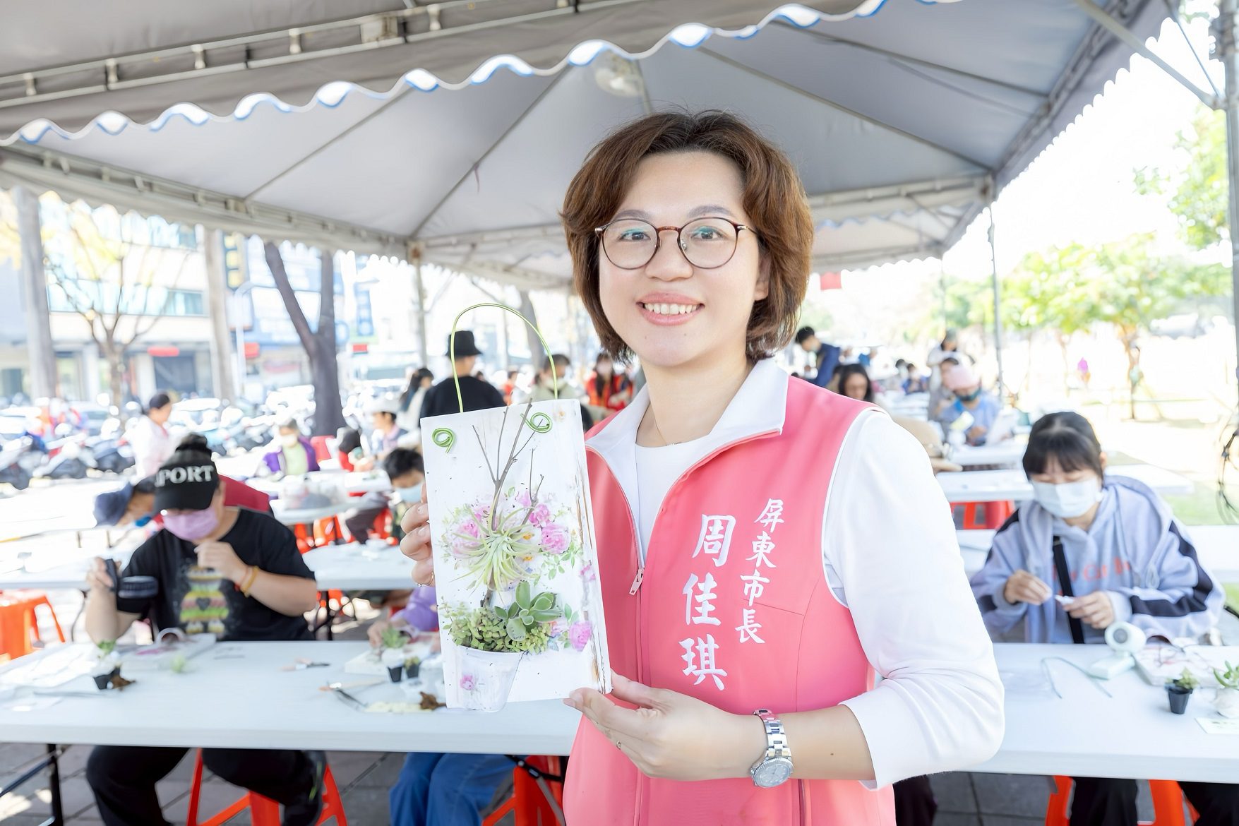 屏東市長周佳琪表示,面對全球氣候變遷與暖化挑戰,城市植樹是改善環境品質、降低熱島效應的重要行動。透過各界協力推動,植樹節已成為兼具環境教育與城市綠化的年度盛會,不僅提升綠覆率,也為城市增加碳吸收能力。她也提到,市公所未來將逐步把水銀路燈全面更換為LED節能燈具,從植樹到節能減碳,邀請市民一起守護地球,為下一代打造更永續的生活環境。