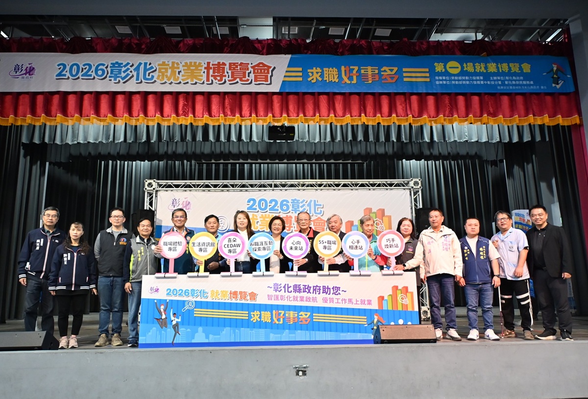 隨著年後轉職高峰期與企業求才需求升溫,為幫助求職者在快速變化的就業市場中提升競爭力,找到適合自己的職涯方向,彰化縣政府於7日上午在鹿江國際中小學舉辦2026「求職好事多」第1場就業博覽會,現場有60家優質廠商參與,包括 19 間上市櫃公司,提供1,100多個工作機會。期盼透過就業博覽會,協助民眾走向好的職涯未來,也為廠商找到合適的工作夥伴。