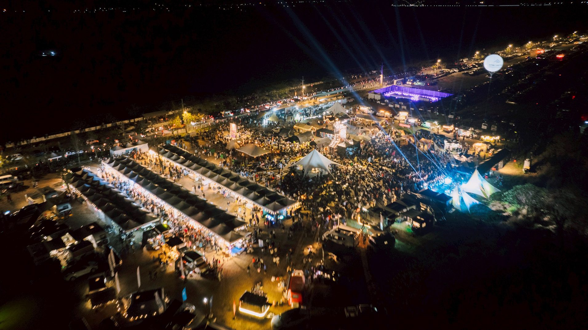 昨(7)日晚間,屏東縣長周春米親臨會場,與民眾一同走逛市集、體驗戶外氛圍,並與來自全台各地的旅人互動交流。當晚壓軸登場的180秒煙火秀與無人機燈光共演,數百架無人機騰空排列成主題圖形,搭配層層綻放的煙火光影交織,璀璨點亮屏北夜空,震撼畫面引發現場歡呼,將活動氣氛推向最高潮,也成為本屆北野祭最具代表性的視覺亮點。