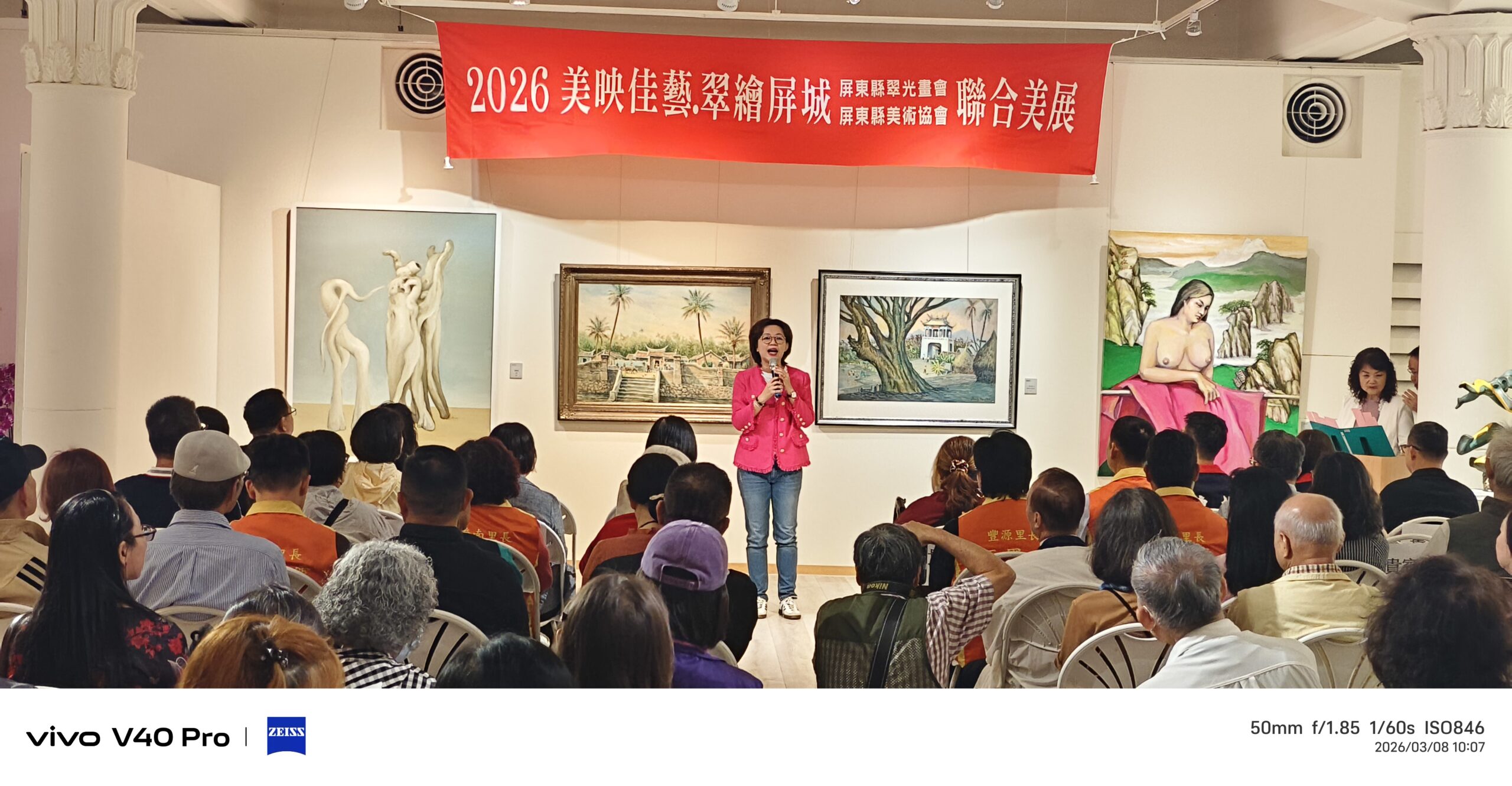 周佳琪市長強調,此次美術館耐震補強後推出開幕畫展,並非重新開館,而是讓這座多年陪伴屏東市民的美術館,以更安全、更舒適的環境持續服務大家。市公所積極向中央爭取經費進行耐震補強與空間改善,除了提升建築安全與展覽品質外,更希望讓美術館成為串連在地歷史、文化與市民情感的重要文化場域,讓藝術走入生活,持續為城市注入文化能量。