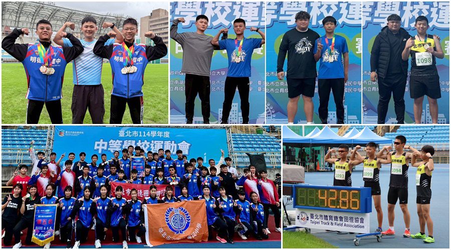 短跑傳奇Usain Bolt是史上最快的人,擁有8次奧運金牌和11個世界冠軍。他的成功不僅因為天賦,更是他的努力和對自己的信心。他的故事告訴人們,只要有毅力、堅定的信念和不斷追求卓越的精神,就能創造不凡的成就。接下來就跟著《愛玩耍》來看看另一個證明,在今年的「台北市中等學校運動會」田徑賽場上,一支沒有體育班背景的國中田徑隊,寫下令人動容的紀錄:勇奪國男總錦標第一名、國女總錦標第五名。
