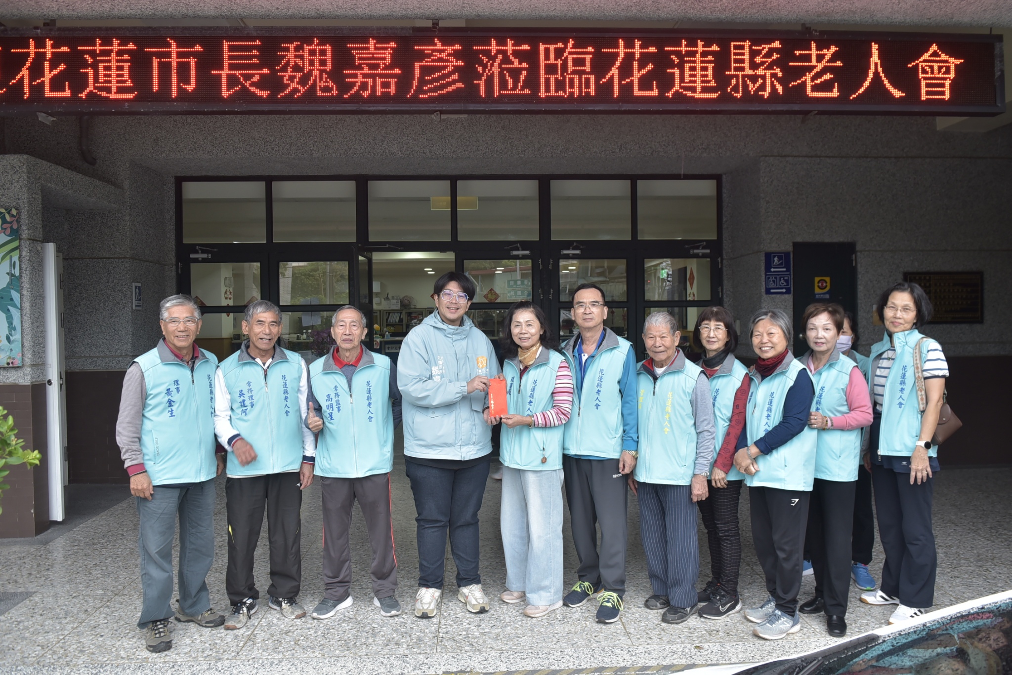 ▲市長魏嘉彥致贈花蓮縣老人會加菜金,由理事長李秀玉(右七)代表接受。(圖/市公所提供,下同)