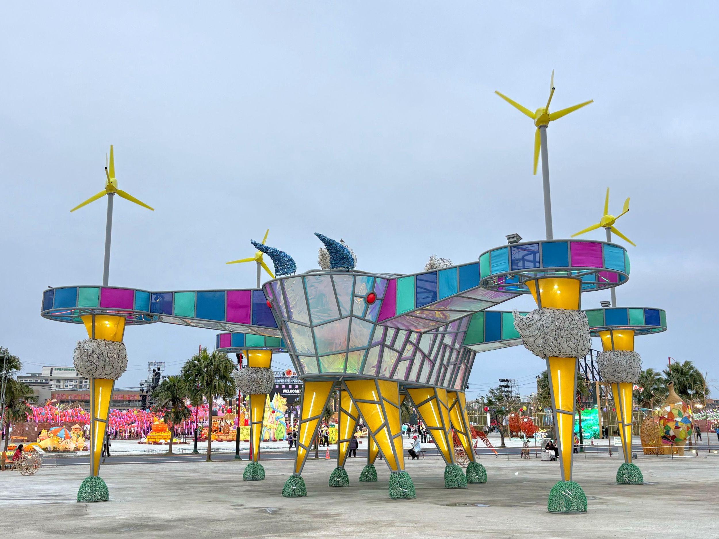 今年燈會「生命之源」燈區由全台首座以超大型農業無人機為意象打造的主燈「未來方舟」領軍,結合風力自發電與數位互動感測技術,外型充滿科技張力,也象徵嘉義農業正式邁向AI與智慧化的新時代,成為燈會中最受矚目的焦點之一。