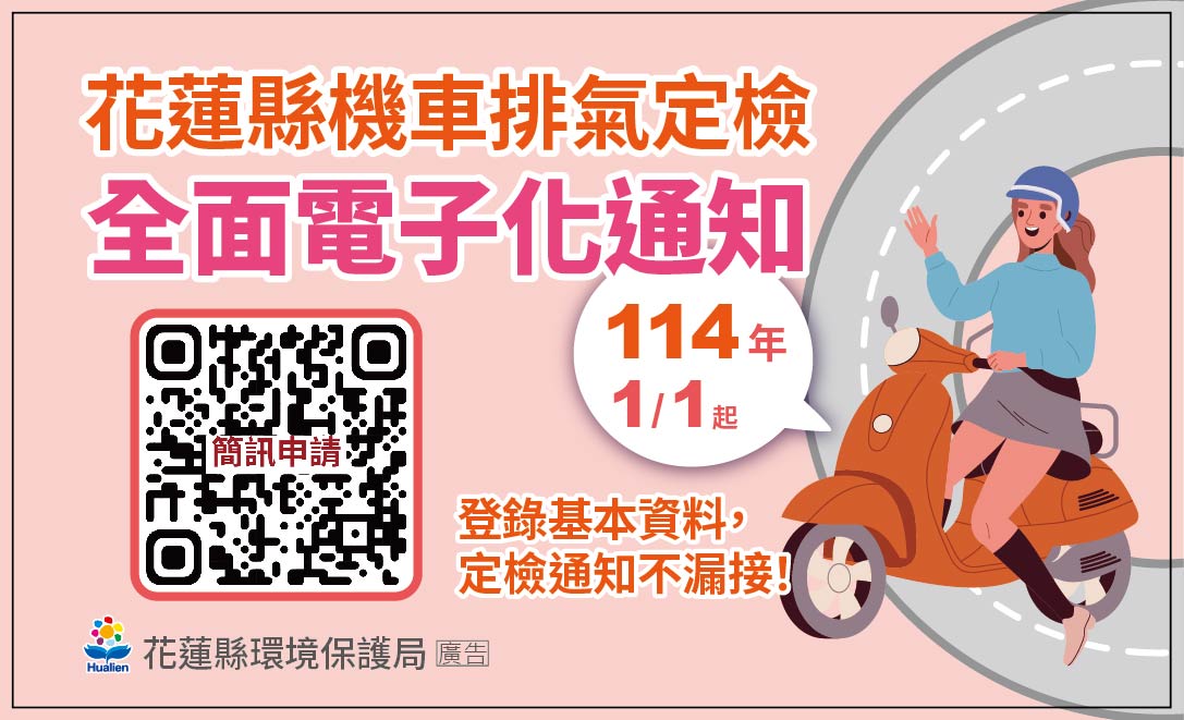 為配合推動花蓮縣淨零減碳政策,並提升機車排氣定期檢驗的便利性與到檢率,花蓮縣環境保護局推出「機車排氣定檢數位化通知」,以多元數位提醒方式取代傳統紙本明信片,設法減少紙張使用與郵寄碳排,同時讓車主能更即時掌握定檢資訊。