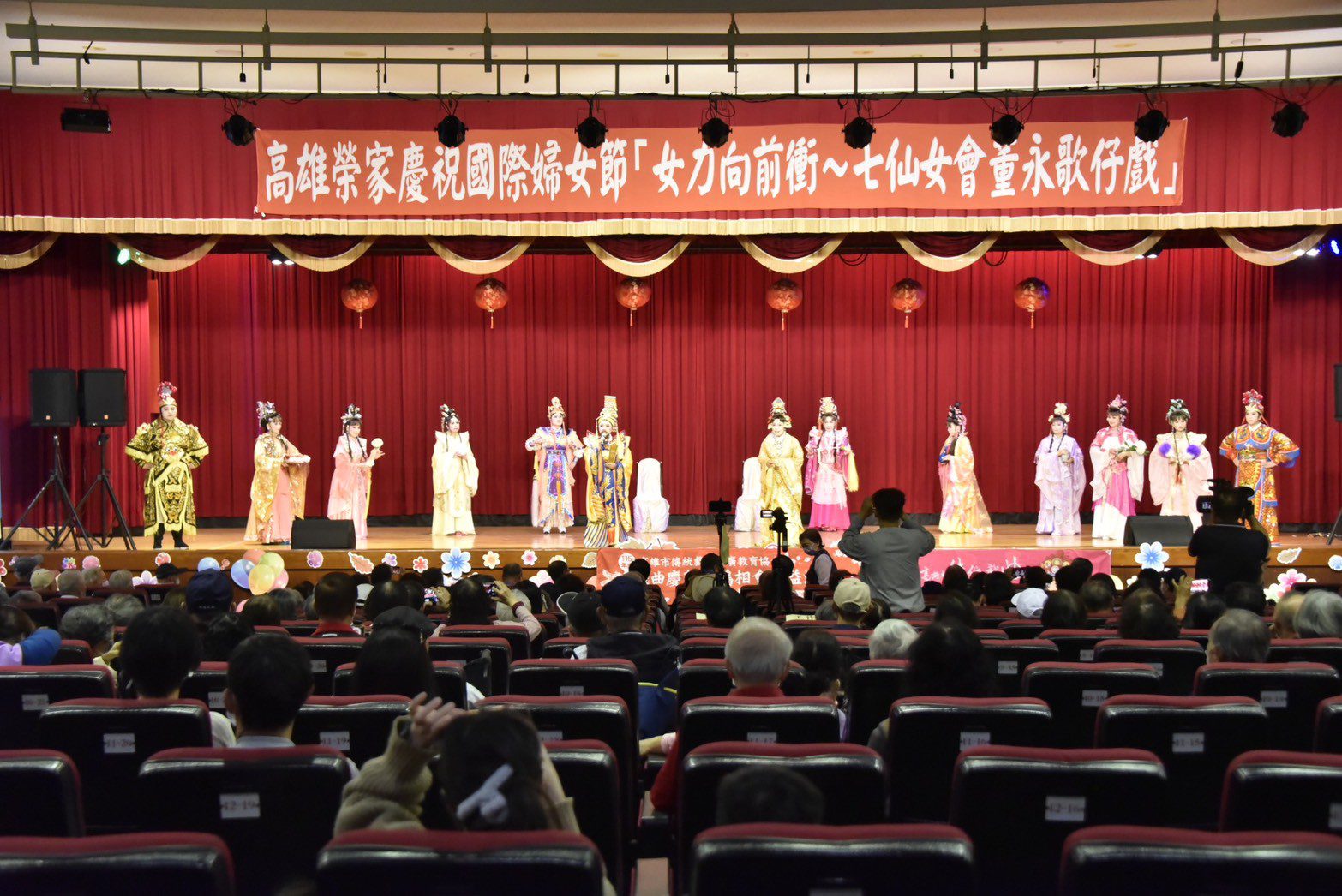 【記者戴英薇/高雄報導】 為慶祝國際婦女節,高雄榮譽國民之家舉辦「女力向前衝~七仙女會董永」歌仔戲活動,邀請高雄傳統戲曲教育推廣協會理事長陳昭錦帶來經典戲碼演出,與榮家長輩同樂。同時結合戲中戲的方式為現場長輩慶生,並準備壽桃與大家分享祝福。活動也邀請高雄山達基教會志工到場,分享L. 羅恩 賀伯特所著《快樂之道》的生活智慧,讓現場洋溢溫馨與歡樂氣氛。