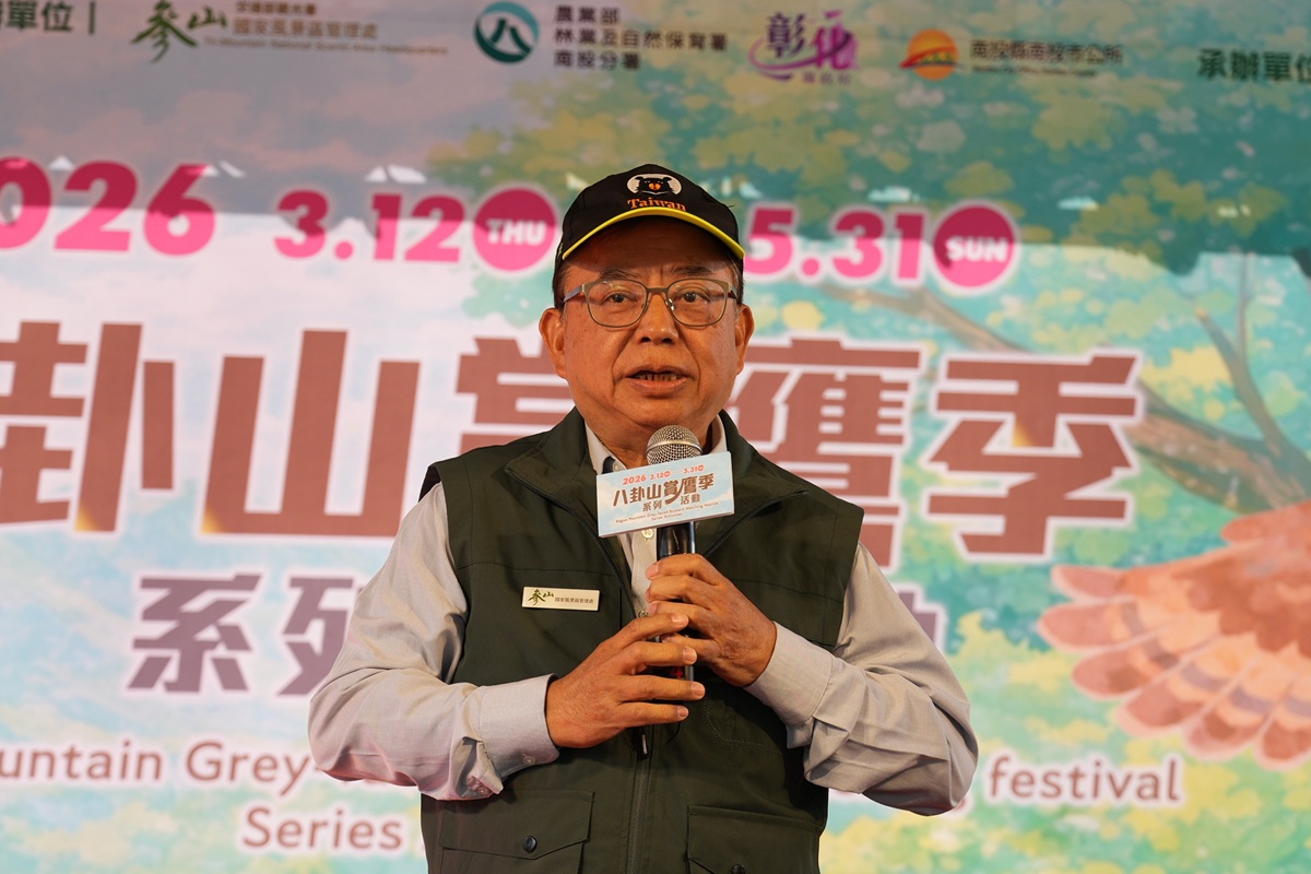 全台賞鳥生態迷期待的年度盛事!每年三、四月灰面鵟鷹北返過境台灣,交通部觀光署參山國家風景區管理處聯合彰化縣政府與南投市公所共同主辦「2026八卦山賞鷹季」系列活動,更是交通部觀光署觀光雙年曆「國際級」特色活動之一,今(12)日於八卦山脈生態遊客中心舉辦宣傳記者會,交通部觀光署參山處長曹忠猷、立法委員黃秀芳、彰化縣政府農業處長郭至善及南投市長張嘉哲等單位代表共同出席,一同為年度賞鷹盛事揭開序幕,誠摯邀請國內外旅人走進八卦山脈,實地感受灰面鵟鷹橫渡長空的遷徙奇景。