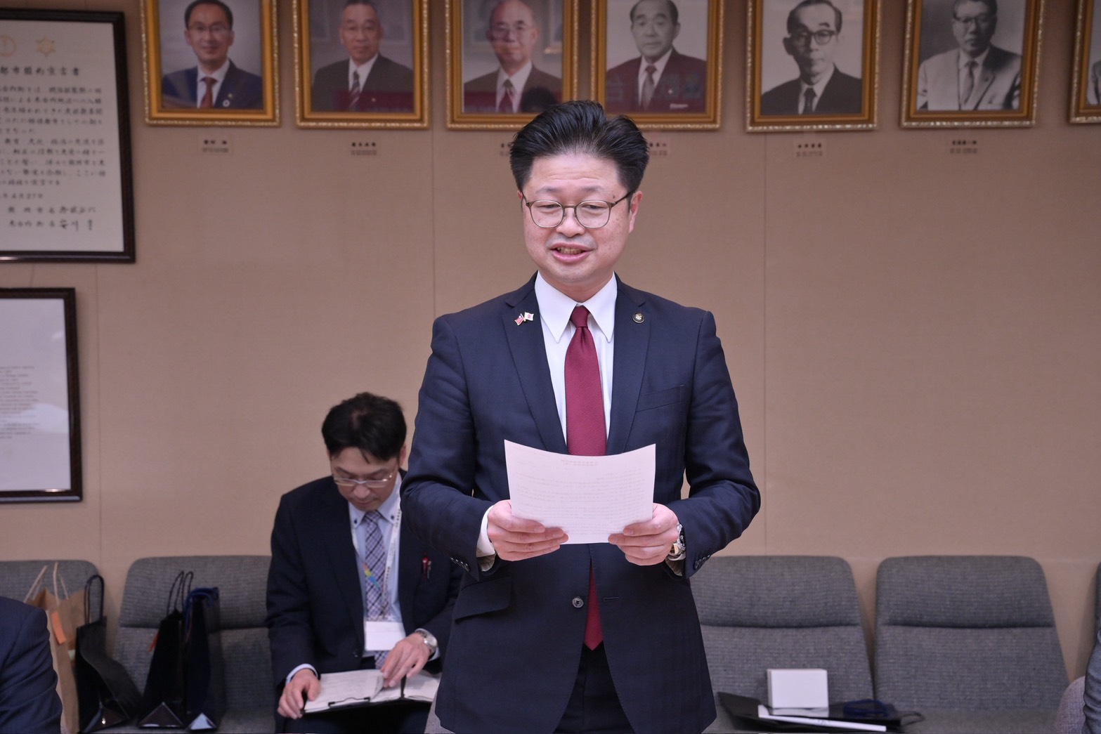 ▲花蓮縣長徐榛蔚(起立者)邀請佐藤市長未來能到台灣、造訪花蓮。