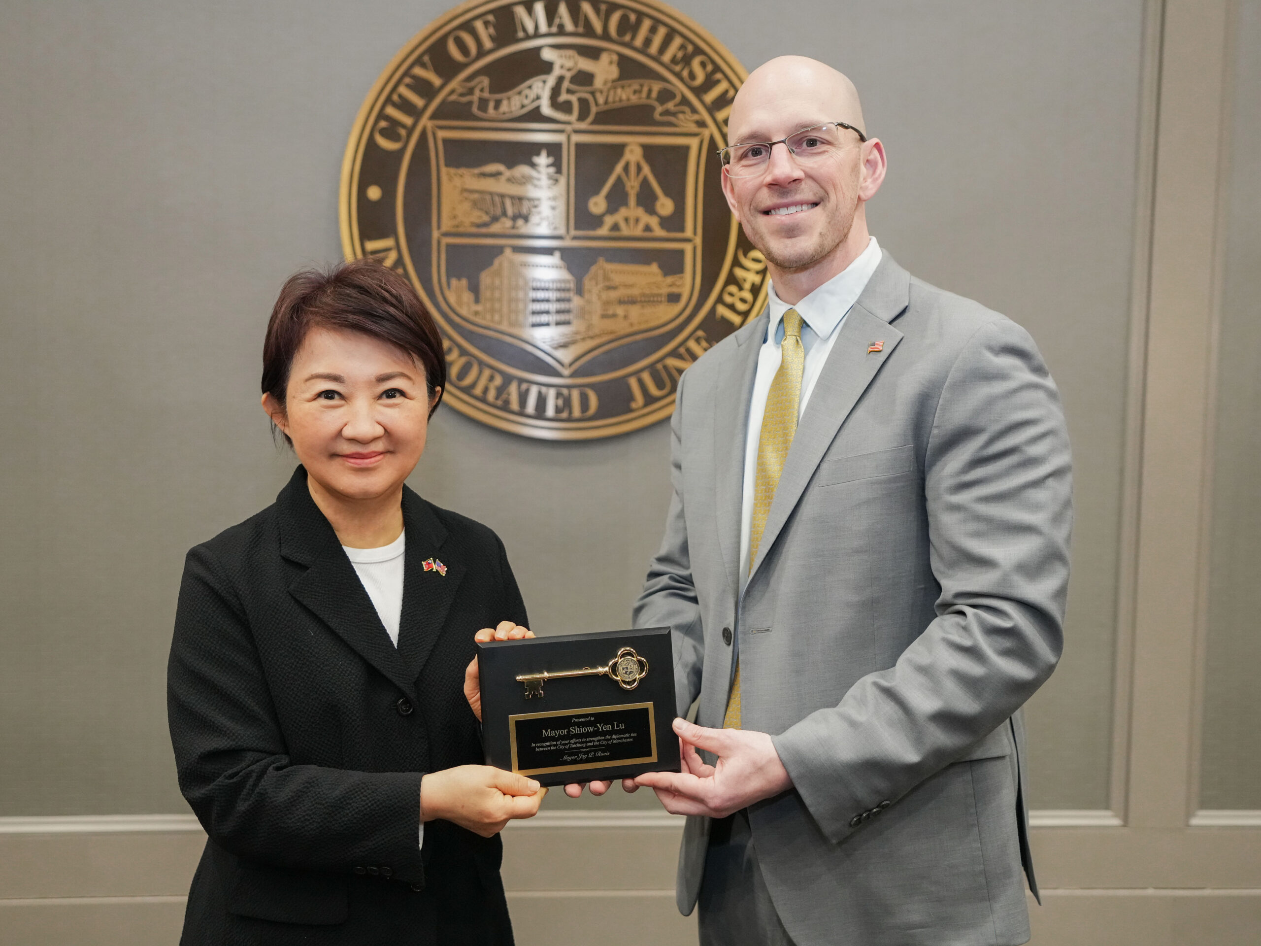 台中市長盧秀燕美東時間12日抵達波士頓,隨即展開訪美首站行程,拜會締結長達37年情誼的姊妹市——新罕布夏州曼徹斯特市。盧市長此行不僅與曼城市長傑伊.魯伊斯(Jay P. Ruais)針對居住正義、街友輔導及犯罪防治等關鍵議題進行深度「實質交流」,更獲贈烙印其姓名的專屬「市鑰」。盧市長強調,兩市正面臨相似的發展挑戰,期盼透過智慧治理的經驗共享,建構永續宜居願景,並感性表示:「為城市做事,跨越萬里也不覺疲累。」