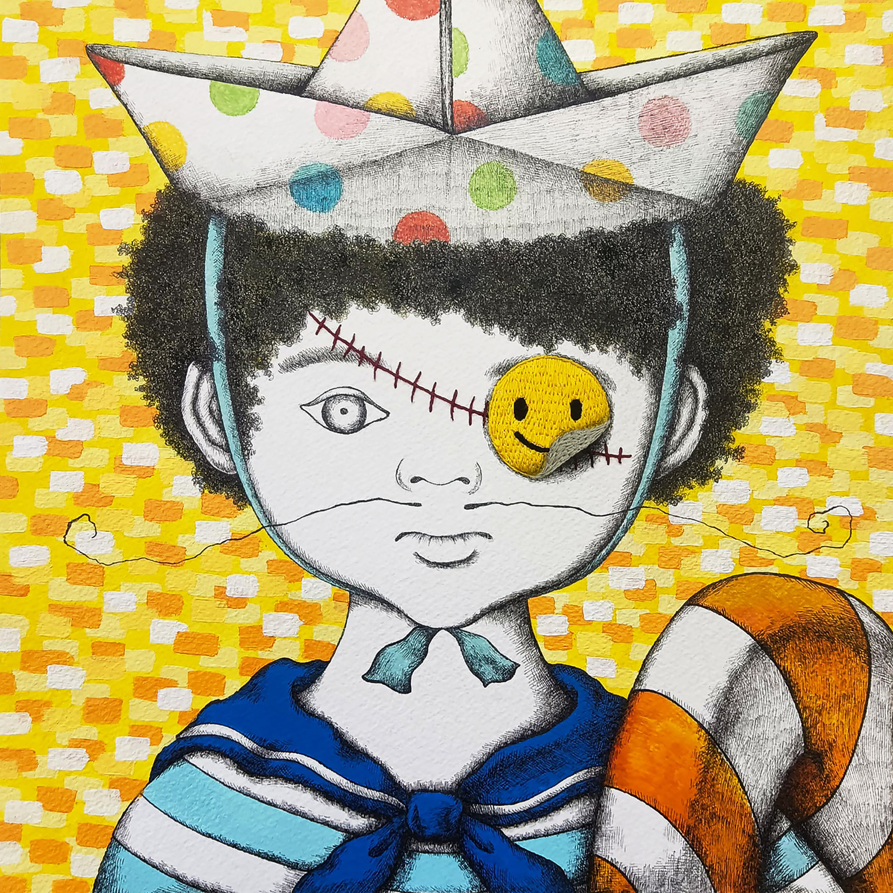 陳庭安的作品,除了對逝者的追憶,更延伸至對弱勢生命的關懷,他筆下那想成為獅子、擁有勇氣打破舒適圈的孩子,或是渴望化身水手、逃離暴力傷害航向遠方的少年,都展現了藝術撫慰心靈的力量 。與之呼應的,是梁登豪當代超現實創作,兩人共同為展覽帶來更多想像與形式的延展。