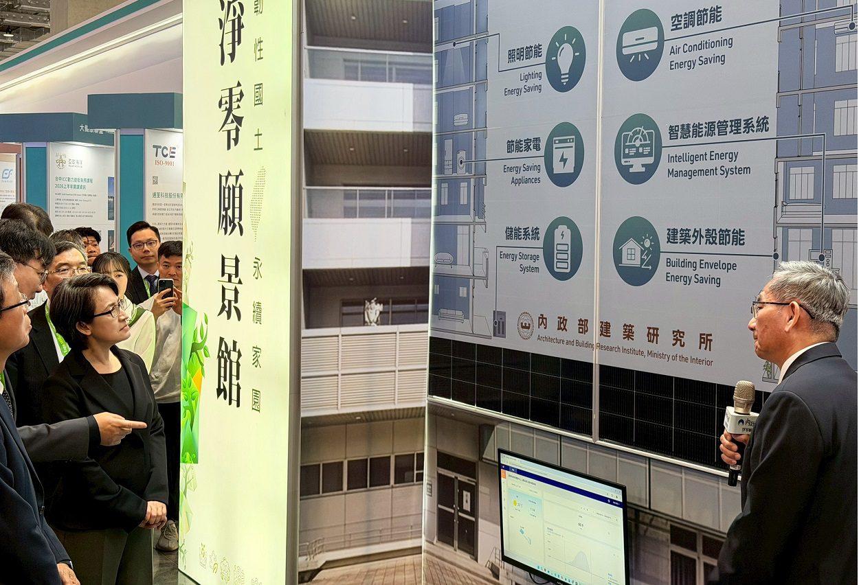 全球城市邁向淨零轉型浪潮下,建築不再只是能源消耗者,而逐漸轉型為能源生產的重要節點。2026智慧城市論壇暨展覽今(17)日於台北南港展覽館揭幕,副總統蕭美琴親自到場參訪「內政部淨零願景館」,聚焦台灣在淨零建築與建築整合再生能源領域的最新發展,並向國際城市代表展示相關政策與技術成果。