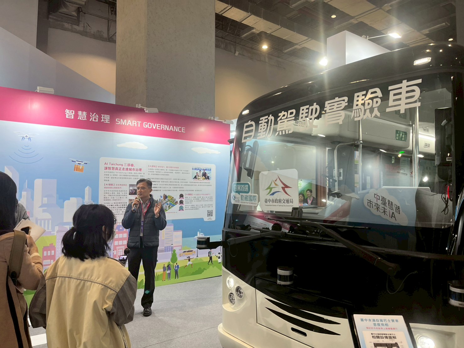 台中智慧交通邁向新里程碑!台中市政府交通局打造的「水湳自駕巴士」示範計畫,於 3 月 17 日至 20 日舉行的「2026 智慧城市展」首度實車亮相,成為南港展覽館焦點。這款由國產技術打造的全電動自駕巴士,預計於今年秋天正式在水湳經貿園區上路,串聯水湳轉運中心與捷運文華高中站。交通局表示,屆時將開放民眾預約免費搭乘,在真實道路環境中驗證自動駕駛與車路聯網(V2X)技術,為台中解決客運缺工並轉型低碳智慧城市跨出關鍵一步。