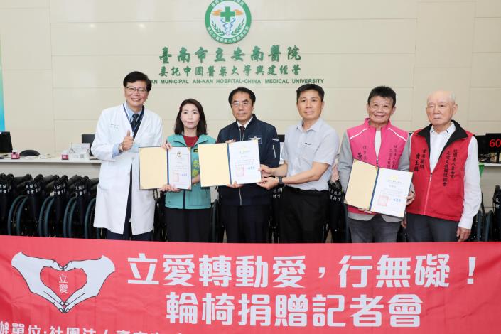 台南市政府表示,輪椅是醫療院所照護行動不便病患的重要輔具,可協助患者順利完成掛號、檢查及治療等醫療流程。立愛文教關懷協會長期以濟助弱勢、關懷學生為宗旨,積極推動公益服務;國產建材實業集團成立逾70年,秉持「永續創新、回饋社會」理念,持續落實企業社會責任。此次愛心捐贈,不僅充實醫院服務資源,也讓患者在就醫過程中感受到更多便利與關懷。