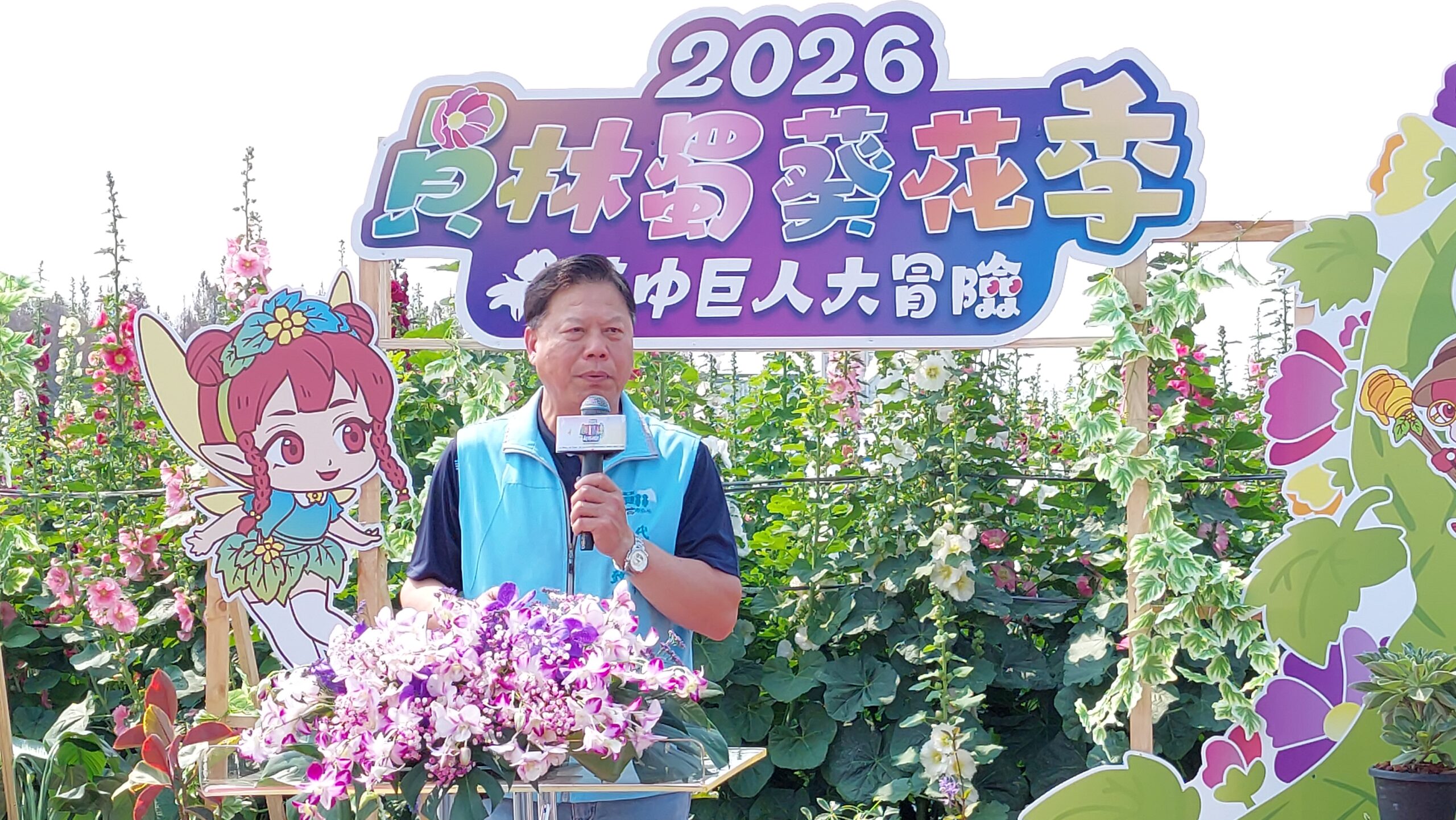 員林市公所於今(19)日在員林南區公園的蜀葵花田,舉辦「2026員林蜀葵花季──花中巨人大冒險」開幕宣傳記者會,由員林市代理市長賴致富帶領,與彰化縣政府機要祕書張建豐、秘書游筑凱、賴沛然、彰化縣政府城市暨觀光發展處行銷推廣科科長丁宜君、參山國家風景區管理處秘書洪英逸、縣議員凃俊任、劉惠娟、張錦昆等,與員林市民代表會各代表與里長,共同迎接春天的到來。