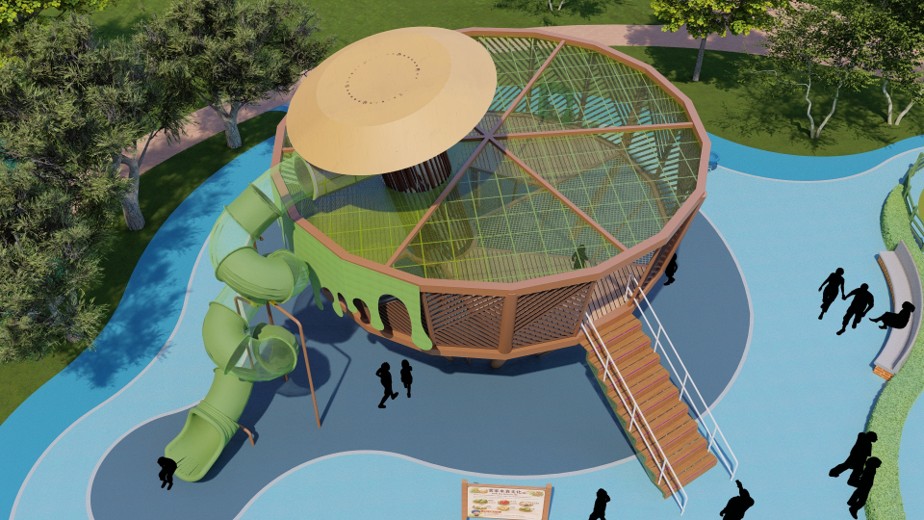 ▲全台首座以客家擂茶與米食為文化意象,設計出共融式遊具。(圖/新北市客家事務局 提供)