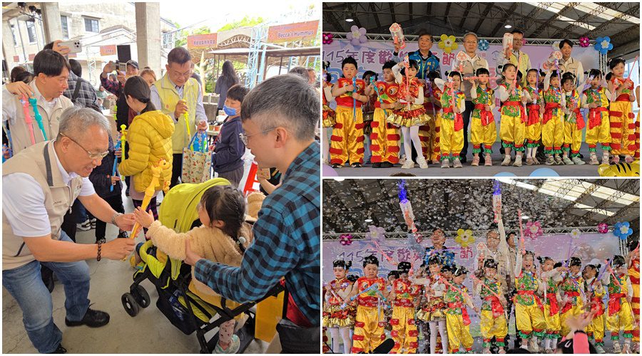 代理縣長林茂盛與現場來賓、兒童代表共同噴出泡泡,為活動掀起高潮,並且贈送禮物給參加活動的小朋友,祝賀兒童節快樂。