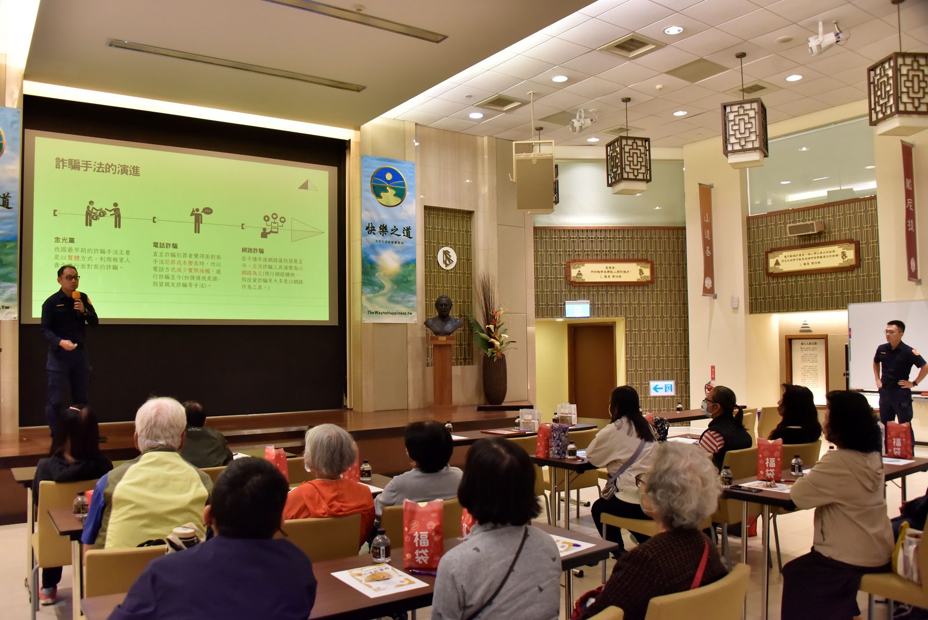 【記者范家豪/高雄報導】 為響應3月20日「國際幸福日」,高雄山達基教會特別舉辦「幸福不容詐,真相守護家」公益講座。活動邀請高雄市警察局新興分局前金分駐所警員進行實務宣導,並由《快樂之道》宣傳大使嚴靜華分享品格教育,吸引眾多市民熱烈參與,透過案例剖析與互動問答,共同提升社區防詐防禦力。