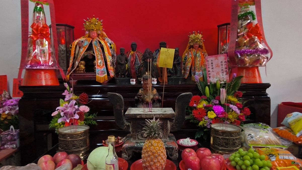 ▲市長林世賢向暫奉於臨時行宮的福德正神稟告福德祠即將進行整修,祈求庇佑施工順利。(圖/記者蕭麗鳳攝)