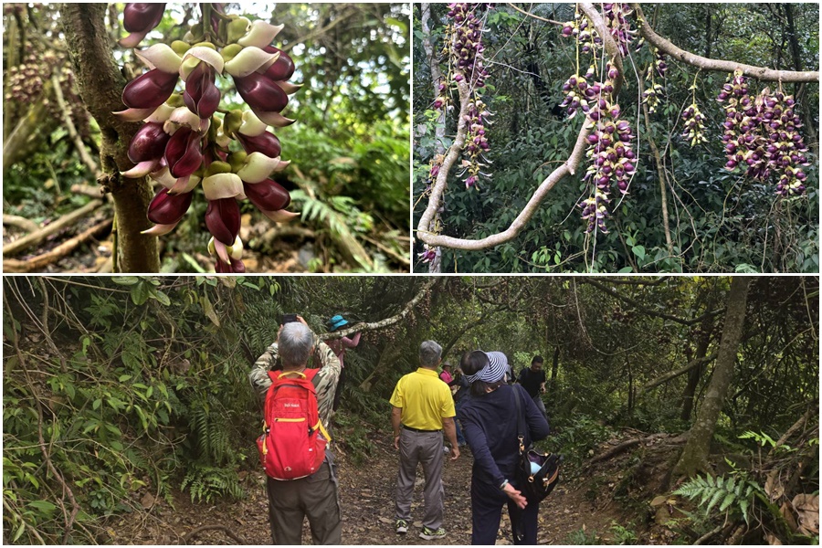 ▲到冷埤林道健行暢遊的山友,正好趕上血藤花期。(圖/吳楊欽攝)