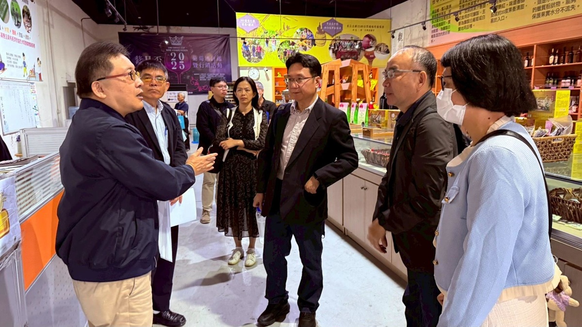 建國科大校長王榮祖今日偕同多位一級主管及 USR 計畫成員,在二林台灣酒窖及金玉湖酒莊接待教育部訪視專員 。王校長現場說明計畫如何結合農業旅遊與生態旅遊 ,活化紅薏仁與葡萄等二林特色產業 。訪視委員對於計畫能精確切入地方需求、帶動品牌發展的實踐成果表示驚艷 ,並肯定校方對區域發展的具體貢獻 。