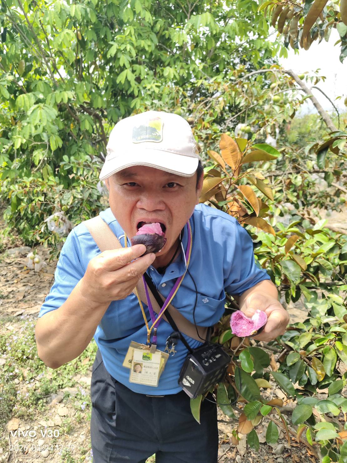 從早年種植水稻,到轉作金煌芒果,再歷經莫拉克風災的重創,她在政府與學界輔導下,轉向有機與混農經營,將單一果園變成百果園。園區內雞鴨鵝與果樹共存,形成自然循環系統,不僅減少除草成本,也提升生態多樣性。