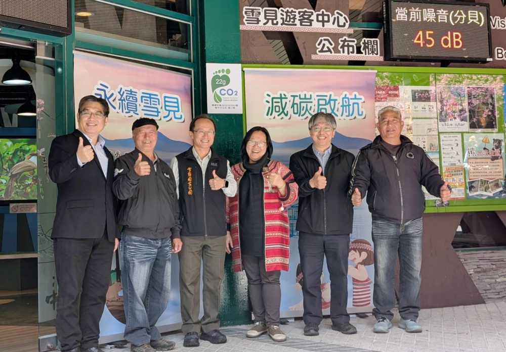 雪管處表示:位於海拔1,870公尺的雪見遊憩區是許多民眾熱愛的戶外探訪地點,擁有豐富多樣的中海拔森林生態,雪管處自113年開始已連續3年進行森林碳匯的調查,並設立中海拔森林碳匯調查的永久樣區。114年雪管處委託環穎永續公司對雪見遊客中心與管理站依據環境部「23- 009場館服務第1.0版」與ISO 14067:2018標準完成場館服務碳足跡盤查,通過臺灣檢驗科技股份有限公司(SGS)第三方查證,正式取得碳足跡查證聲明書,雪見遊客中心及管理站場館服務計算範圍涵蓋雪見遊客中心暨管理站、備勤空間與相鄰之休憩與停車空間。