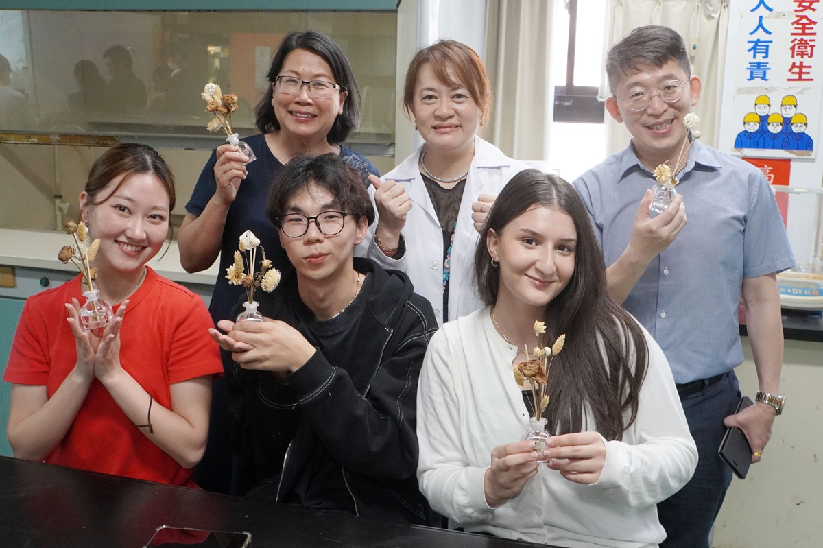 華語教學中心主任彭涵梅表示,此次活動正值二十四節氣「春分」前後,特別結合學校綠色校園理念,規劃「春分擴香花瓶DIY」,讓文化學習融入日常生活。