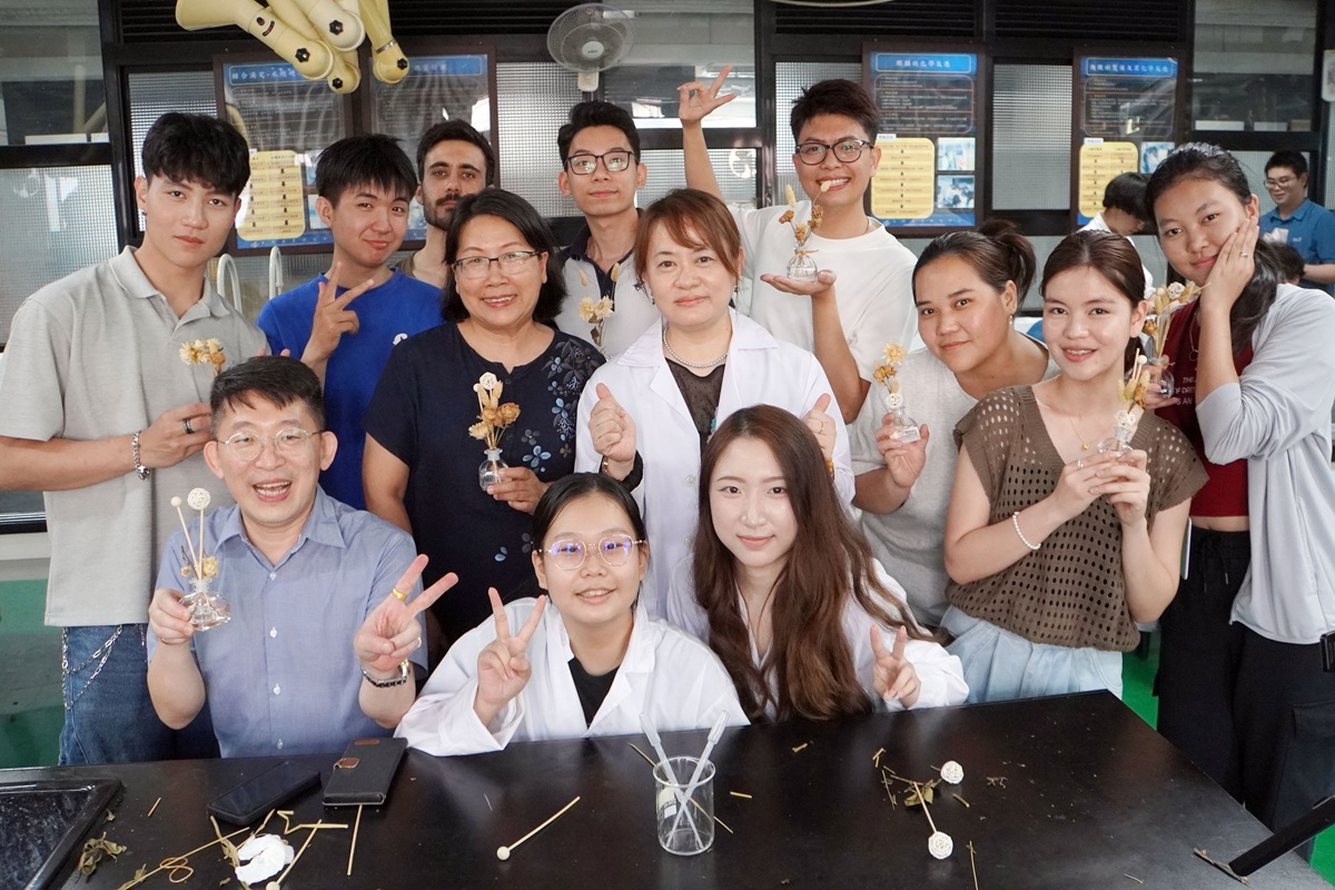 為協助國際學生體驗台灣文化與節氣之美,大葉大學華語教學中心邀請藥用植物與食品保健學系副教授張淑微,帶領來自日本、法國、印尼、越南、馬來西亞、巴基斯坦及香港等地的國際學生,參與「春分擴香花瓶DIY」活動,透過香氛手作認識春分節氣意涵,感受台灣校園的綠色文化特色。