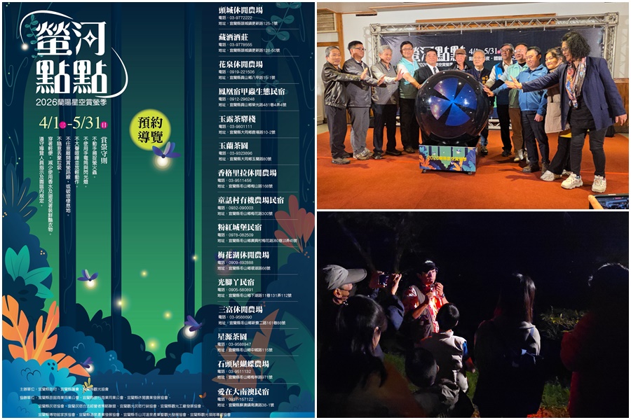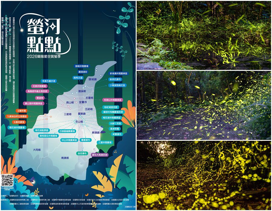 賞螢導覽活動採預約制,請參閱賞螢地圖;賞螢地圖可至2026蘭陽星空賞螢活動官網firefly.yilanmr.org.tw下載。
