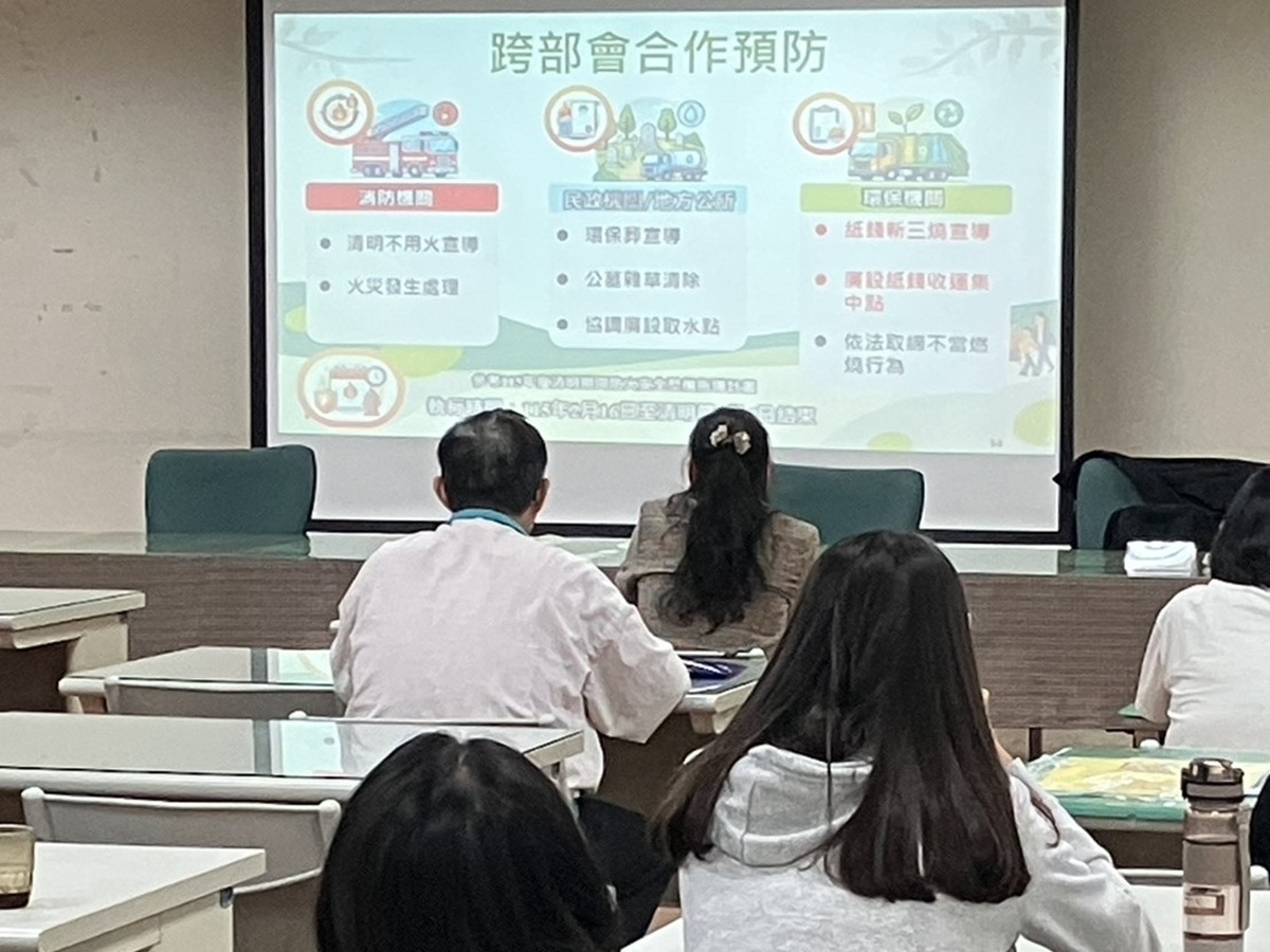 消防局於2月25日配合環保局共同召開清明節環保祭祀宣導說明會,邀集公寓大廈管理委員會、民政及各鄉鎮市公所等單位,宣導配合環境部新三燒政策,減少明火使用,以降低火災風險並維護空氣品質。