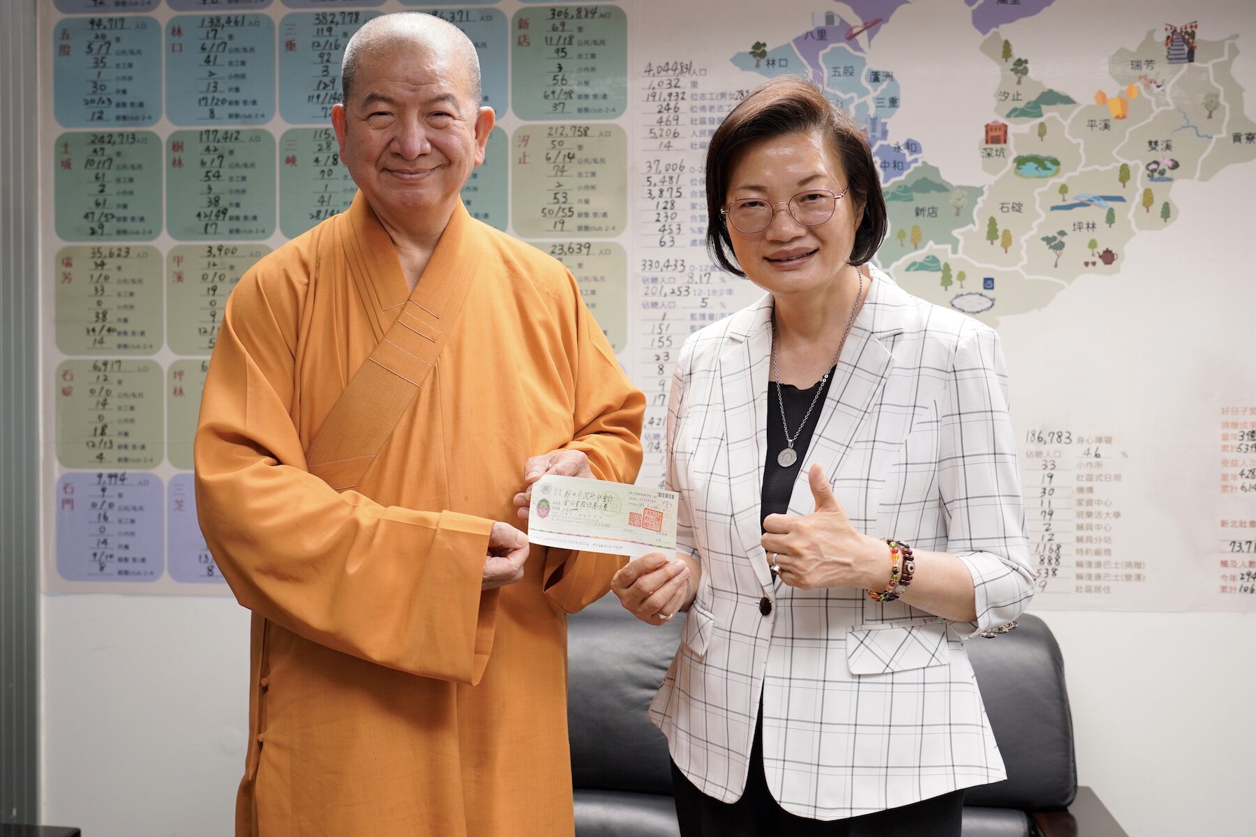 ▲新北市佛教會在副理事長釋明光(中)帶領下,一起捐贈善款。(圖/新北市社會局 提供)